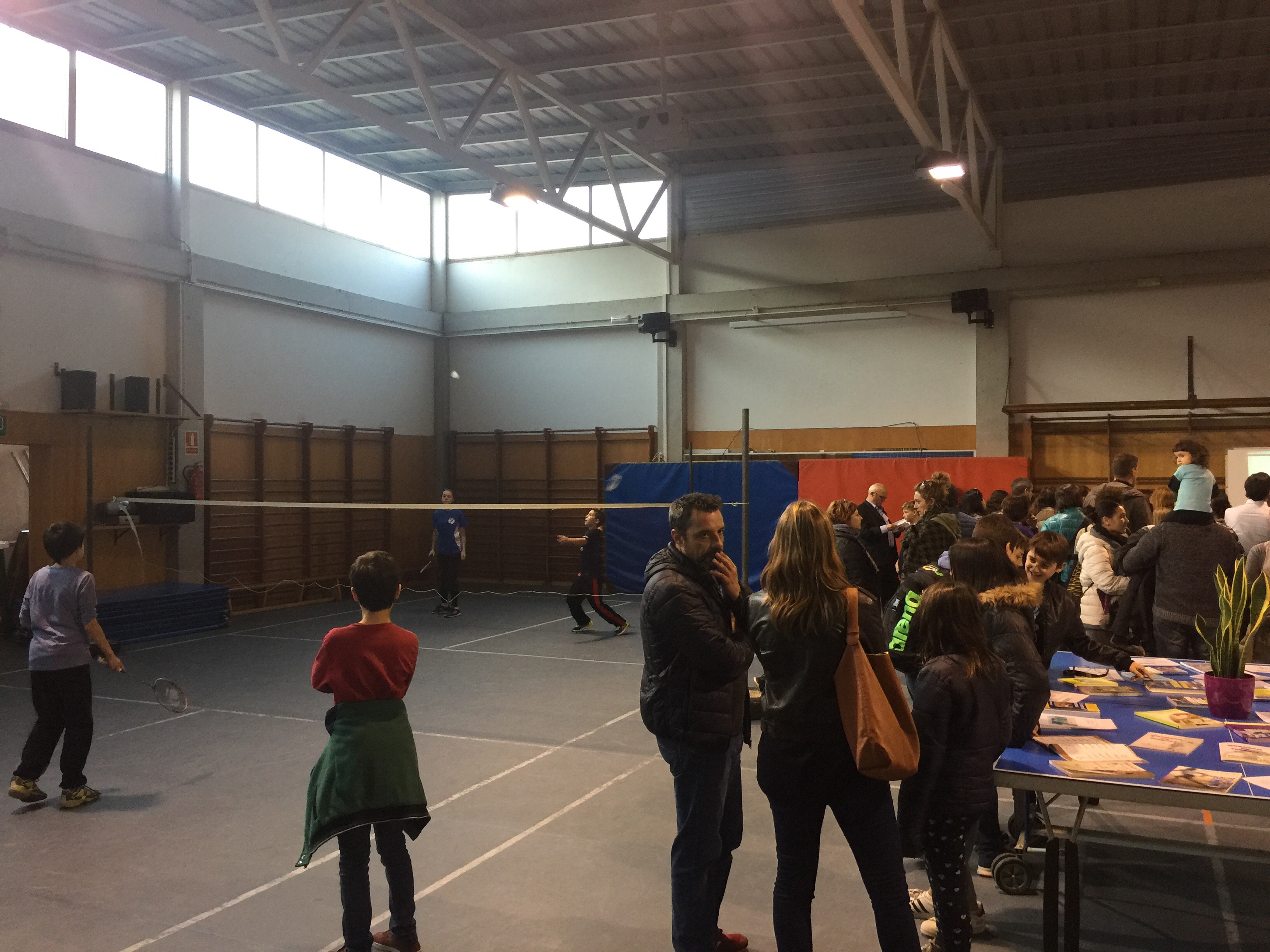 El gimnàs amb exposicions, projeccions i jocs.