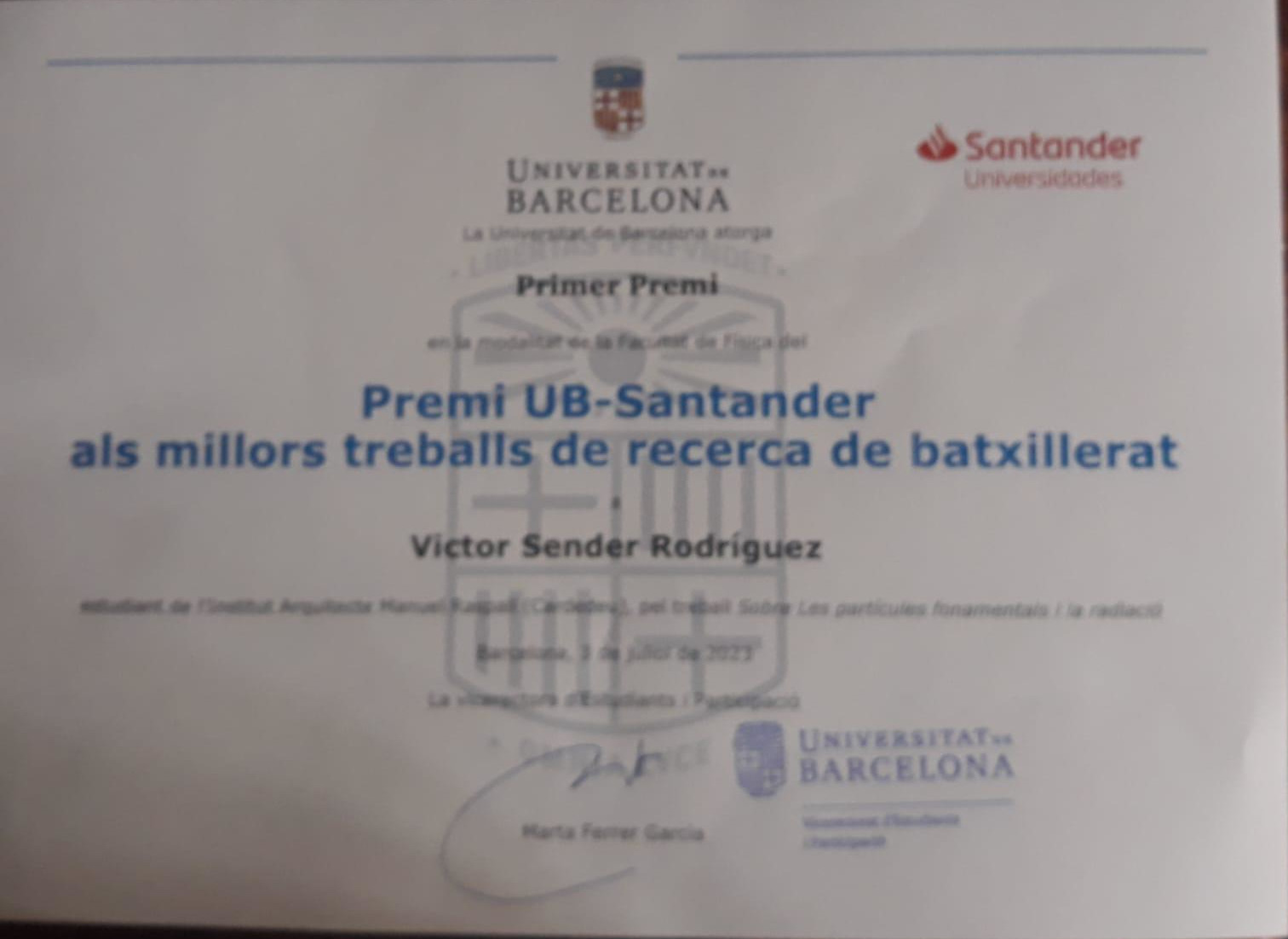 Aquests premis de física de la Universitat de Barcelona i patrocinats pel Santander es celebren cada any i reconeixen els millors treballs de Recerca fets en aquest àmbit pels alumnes de batxillerat.