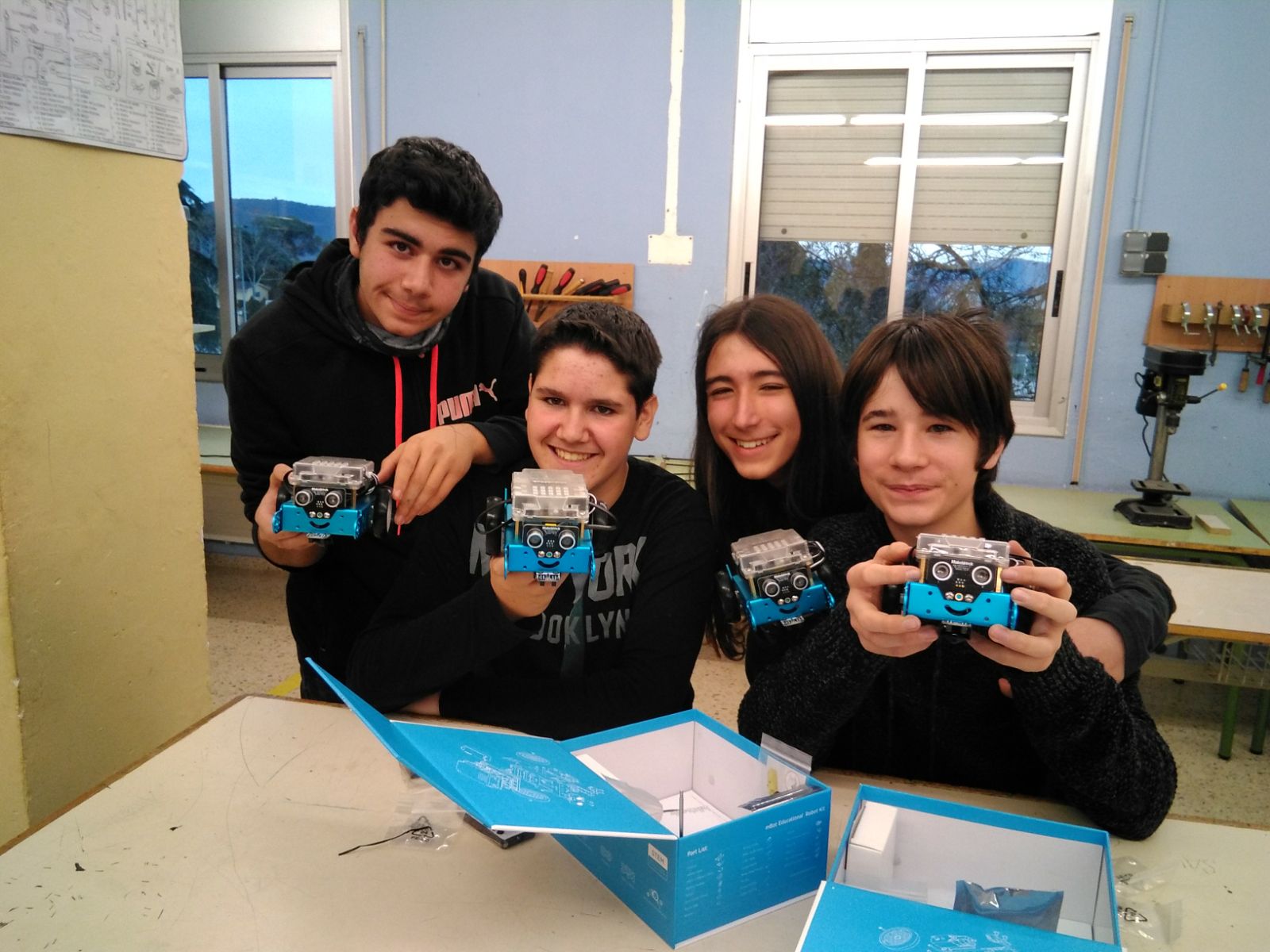 Dilluns a la tarda, l’alumnat voluntari del Servei Comunitari del Pla Educatiu d’Entorn de Cardedeu amb el nostre professorat de tecnologia, van estar ben concentrats amb la construcció dels robots que portaran a les escoles de Cardedeu adquirits per l’Ajuntament de Cardedeu.