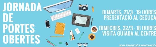 Jornada de Portes Obertes: Dimarts 21 de març de 2017 a les 19 hores: PRESENTACIÓ DEL PROJECTE AL CECUCA. Dimecres 22 de març de 2017 a les 18 hores: VISITA GUIADA PER ALUMNAT I PROFESSORAT AL CENTRE. Conèixer el nostre projecte amb detall INFORMACIÓ SOBRE EL PROCÉS DE PREINSCRIPCIÓ I MATRÍCULA La preinscripció és