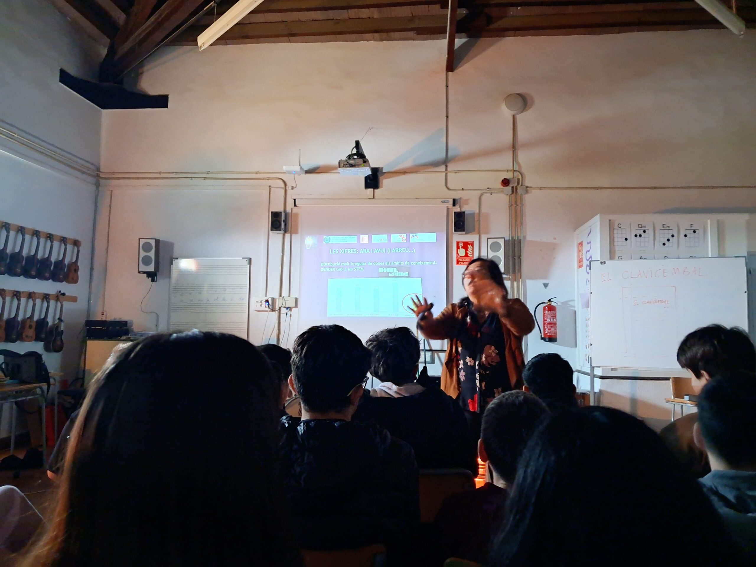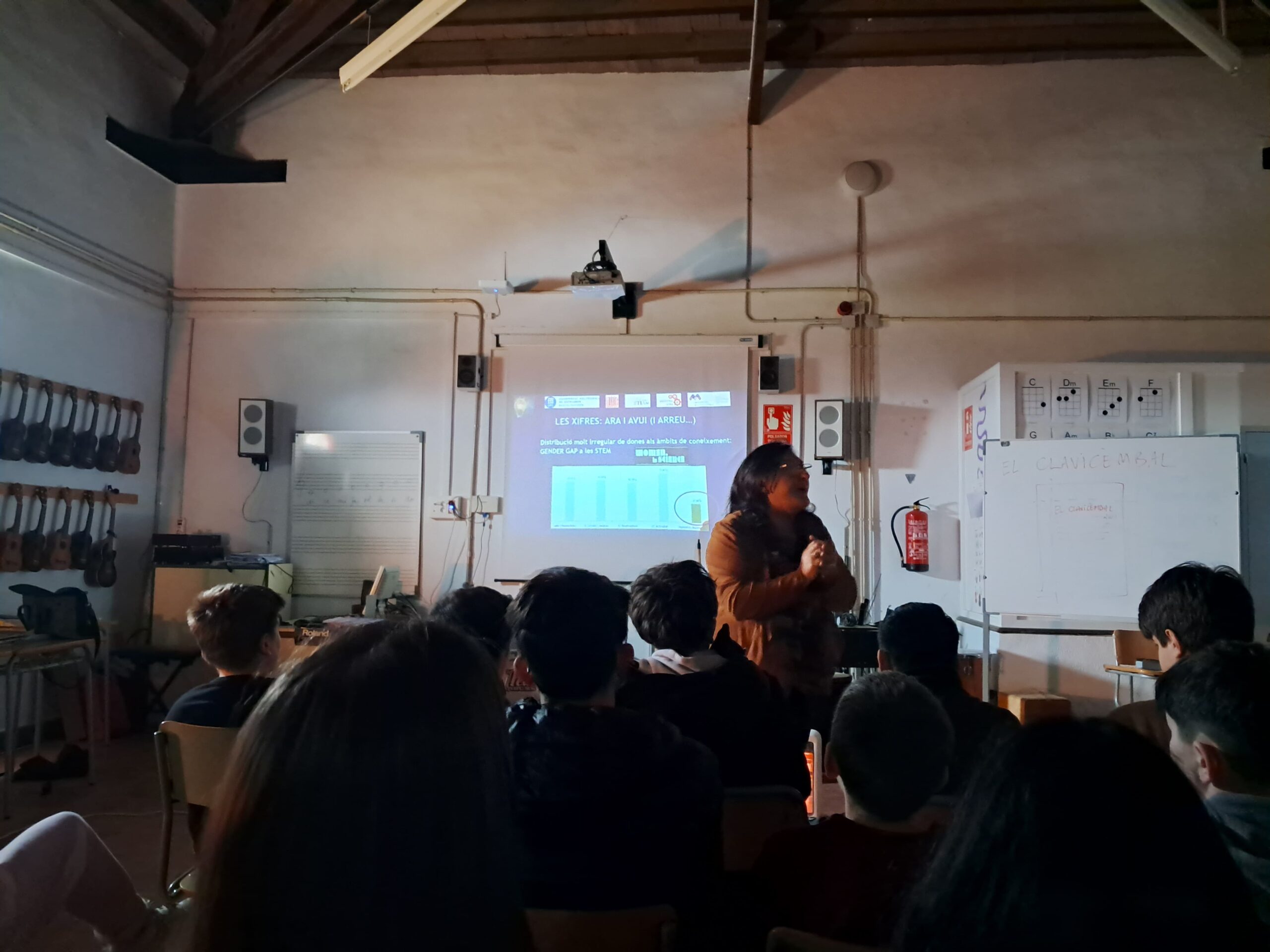 La setmana passada l’alumnat de 2n d’ESO va gaudir d’una xerrada de la Núria Salán, professora i divulgadora científica de la Universitat Politècnica de Catalunya, sobre l’accés de les dones a la universitat en carreres de ciència i tecnologia i la resposta de la societat. Vam fer un repàs històric d’algunes de les dones científiques més brillants de la història (la majoria molt poc conegudes), de les seves aportacions i de les dificultats que van tenir tant per estudiar com per presentar les seves invencions o descobriments. A partir d’aquesta experiència, hem reflexionat en grup sobre els estereotips de gènere que s’arrosseguen i que no afavoreixen l’apropament de les dones a les titulacions tecnològiques i estem construint una mural en què aprofundim en la vida i els descobriments d’algunes de les dones científiques més importants de la història.