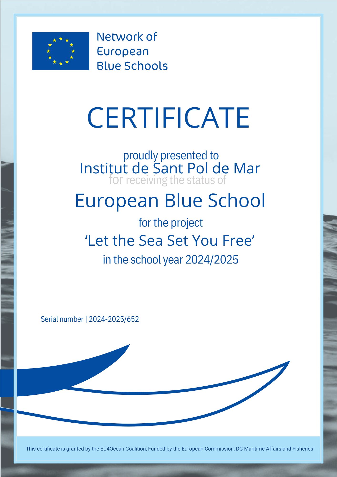 L’institut de Sant Pol de Mar acaba de ser reconegut com a Escola Blava per la Network Europeran Blue Schools de la European Comission.