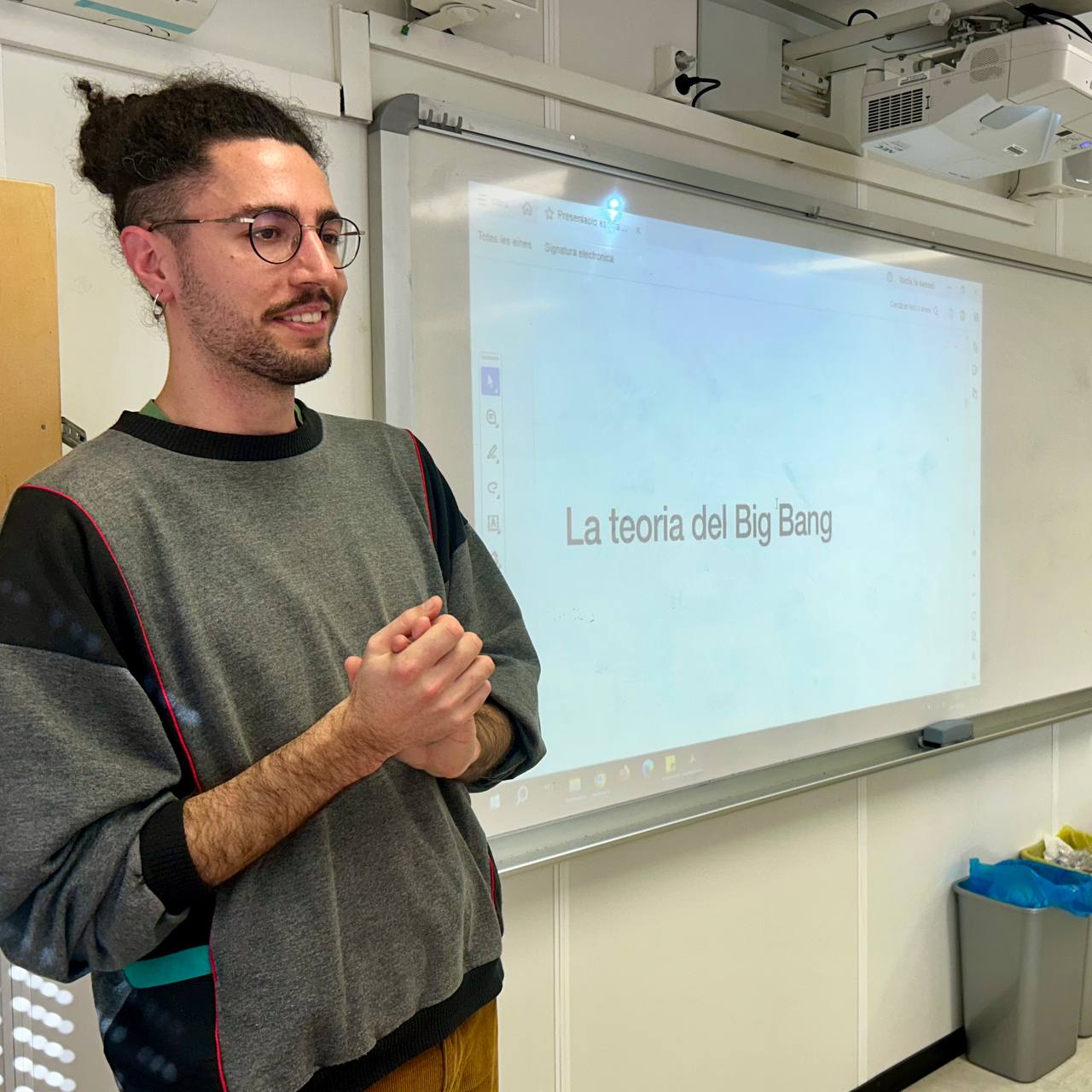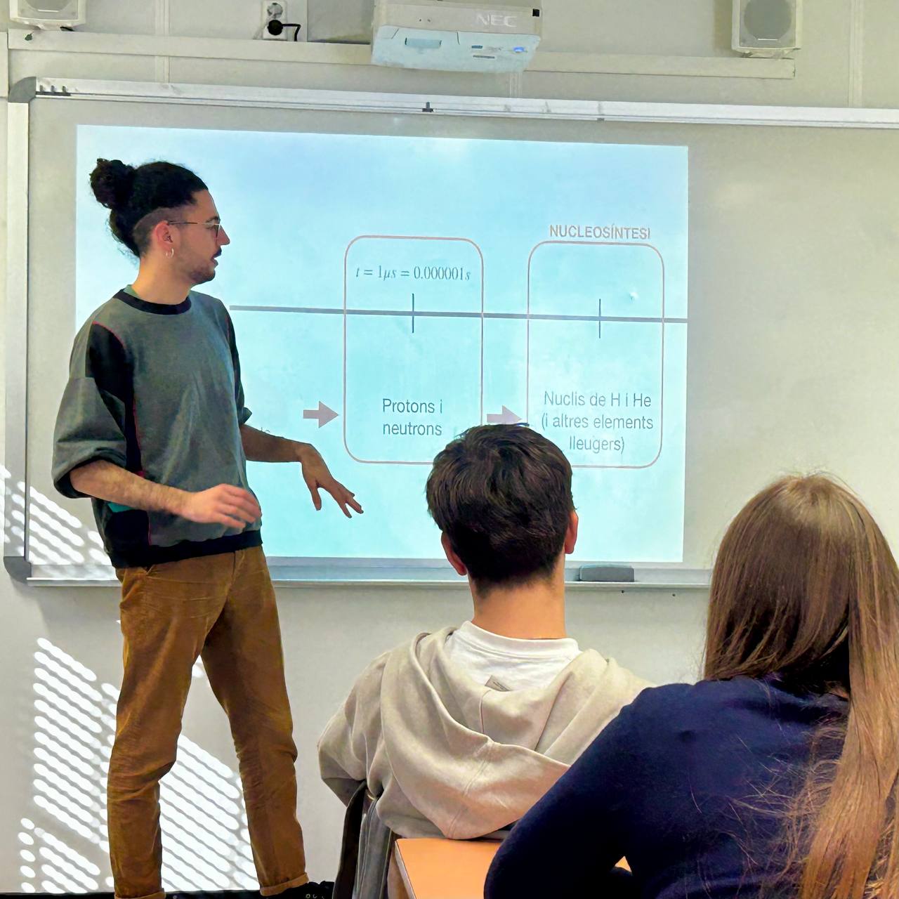 També ens va introduir els primers moments de vida de l’Univers, amb un joc de cartes; i com els físics poden estudiar i entendre processos de fa milions d’anys.