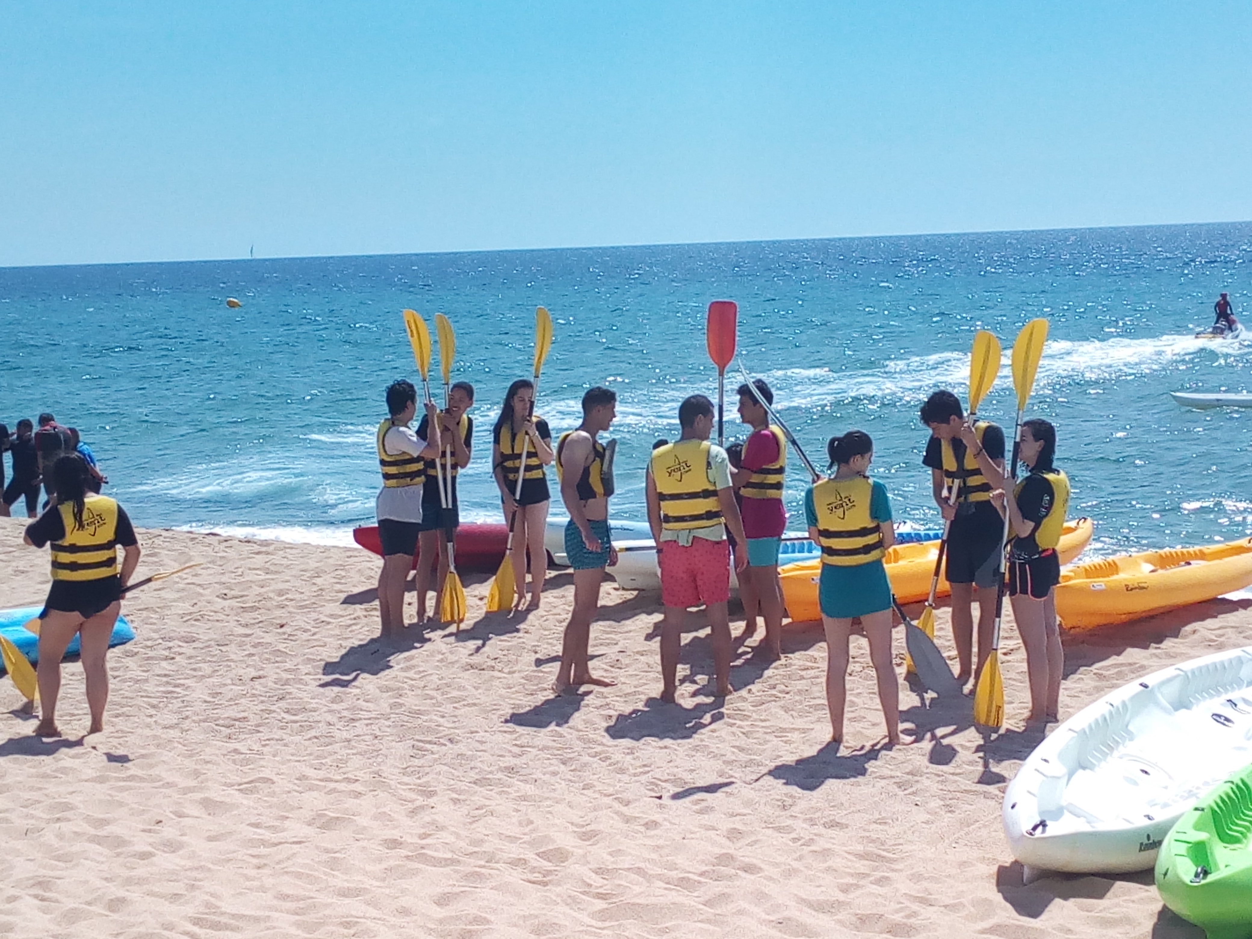 Des de l’àrea d’Educació Física hem proposat a l’alumnat de 1r de Batxillerat de participar en una activitat al mar. La idea era fer vela, caiac i padre surf, però el mar estava una mica mogudet i des de l’escola del vent de Badalona ens han proposat canviar l’activitat de vela per la de bodysurf. Així doncs hem pogut practicar caiac, bodysurf i big paddle.