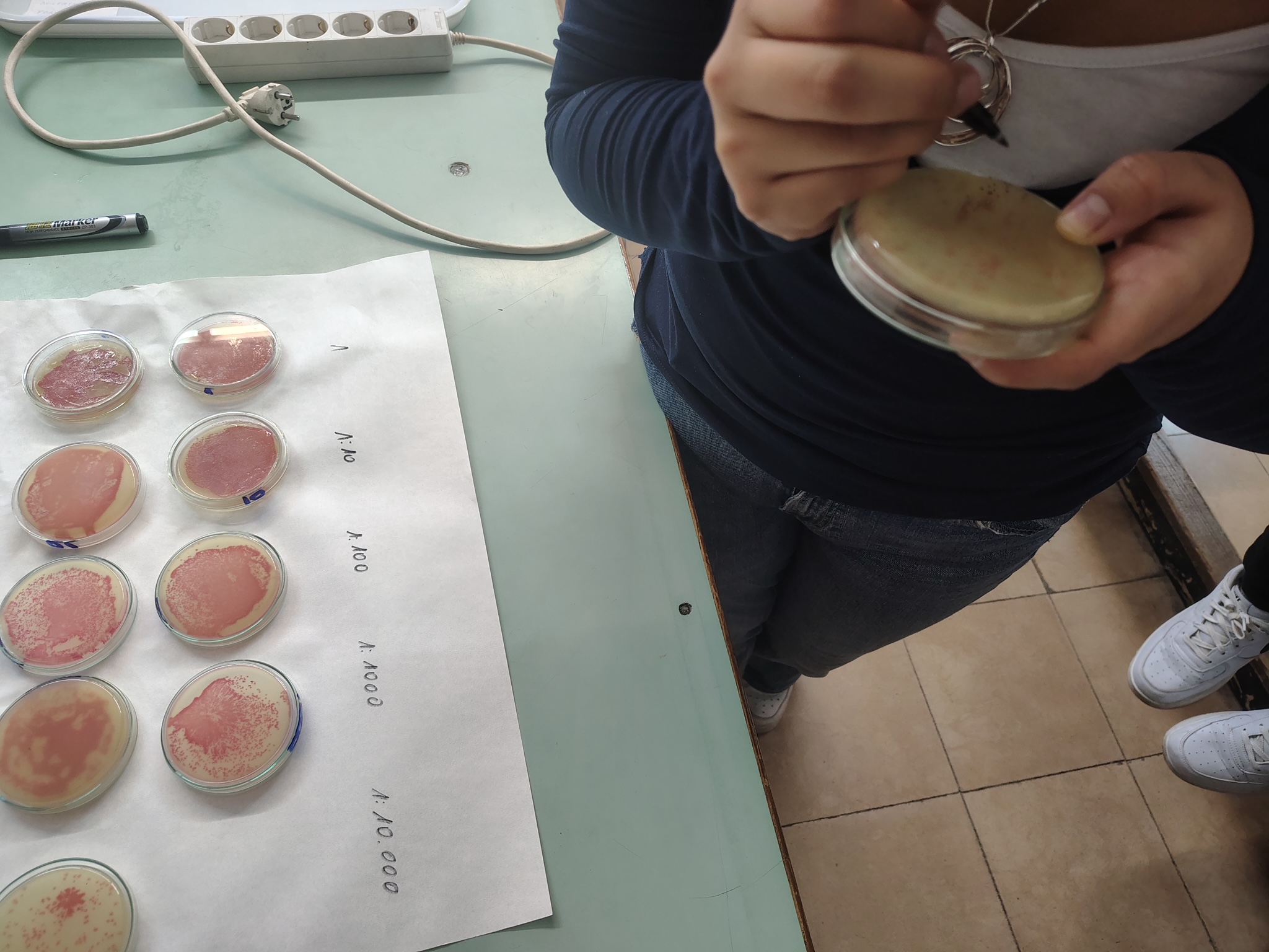 L’objectiu principal de la sessió ha estat determinar la concentració de microorganismes presents en un medi líquid. Per aconseguir un recompte fiable, els alumnes han fet un banc de dilucions seriades. Aquest procediment permet reduir la concentració de la mostra original de manera esglaonada per obtenir plaques amb un nombre de colònies comptable.