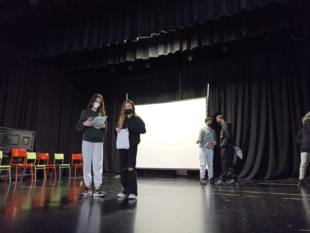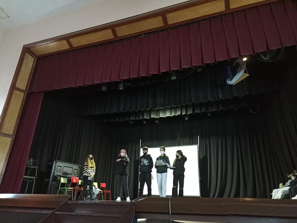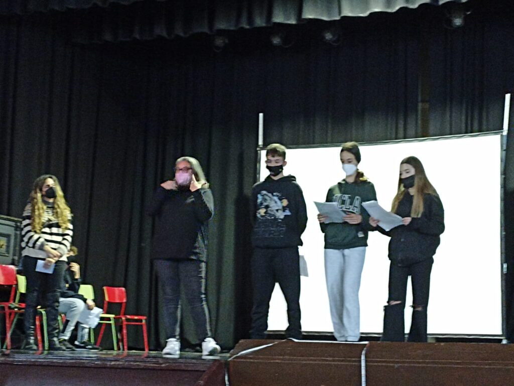 Els alumnes van pujar a l’escenari del nostre teatre on van explicar la seva experiència personal i van interpretar una escena titulada “Acoso”.
