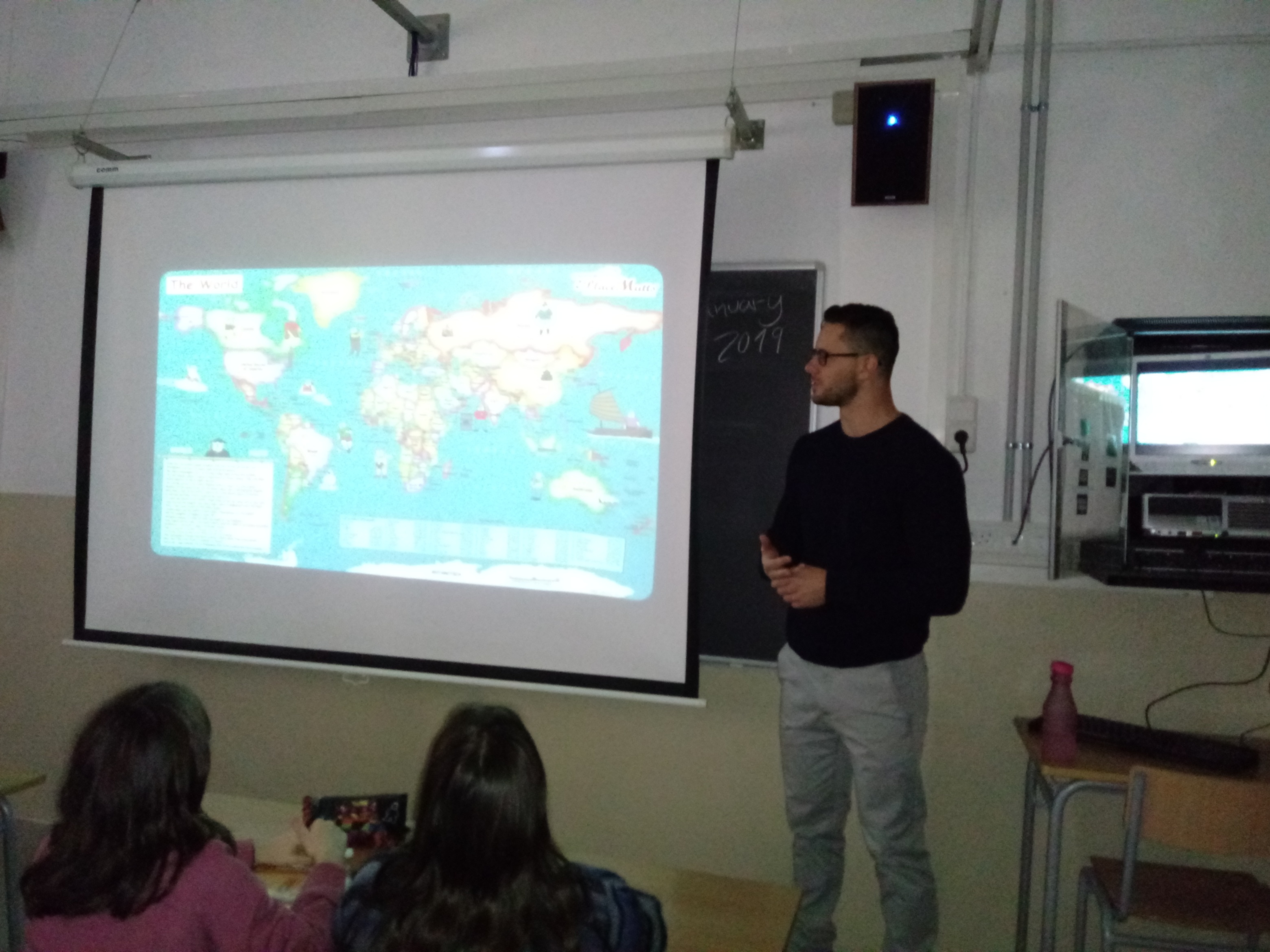 En el marc d’aquest projecte, els alumnes de 2n van rebre la visita del Sr. Rudolf Volster, que va fer en anglès una presentació brillant sobre un país del món, d’entrada desconegut per a l’alumnat, amb qui va interactuar i connectar fàcilment i que va haver de descobrir quina era aquesta destinació. Aquesta presentació ha estat el punt d’arrencada per motivar els alumnes i començar a treballar en el projecte.