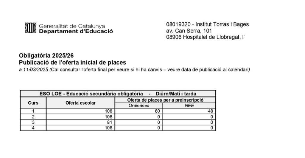 Oferta de places ESO i Batxillerat