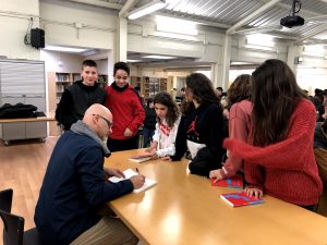 El dia 16 de gener de 2019, a la biblioteca de l’institut Torre de Malla, els alumnes de tercer de la ESO van poder conèixer personalment en Jorge Gamero, autor de la novel.la que van llegir a llengua i literatura castellanes: Simón, no; Saimon. Després que l’escriptor es presentés, els alumnes li van fer moltes preguntes sobre l’obra i la seva vida d’escriptor i ell les va respondre amb molta amabilitat. Finalment, en Jorge va signar la novel.la a tot l’alumnat que es va acostar a demanar-li.