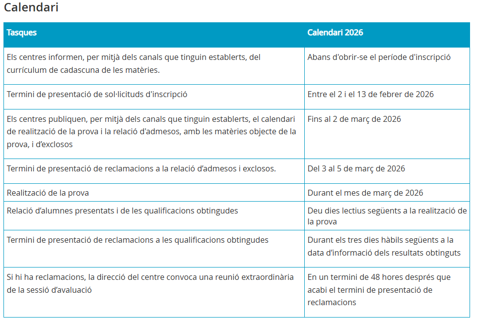 Proves GESO (Graduat en educació secundària obligatòria (majors de 18 anys)), aquí teniu el calendari general: