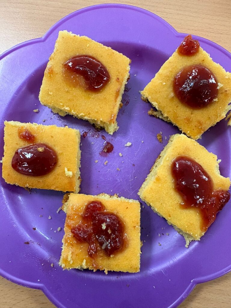 Avui hem pogut tastar les diferents propostes, totes elles dissenyades per ajudar a millorar la condició de diverses patologies sense renunciar al sabor. Entre els productes elaborats hi havia barretes amb fruita, fruits secs i maduixes pensades per a l’anèmia, un pastís de taronja per reforçar l’organisme en cas de refredat, natxos i guacamole reformulats per no incrementar el colesterol, i un pastís elaborat amb farines saludables, fruits secs, llavors i espècies orientat a alleujar els símptomes de la menopausa.
