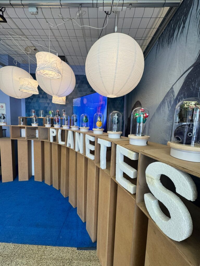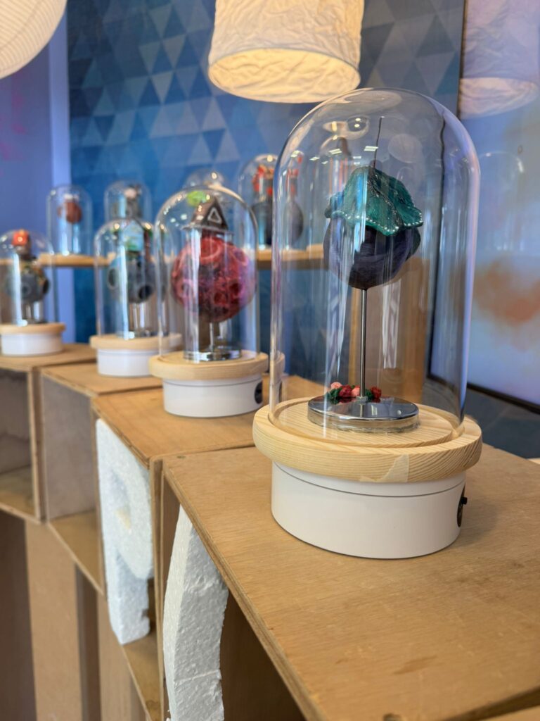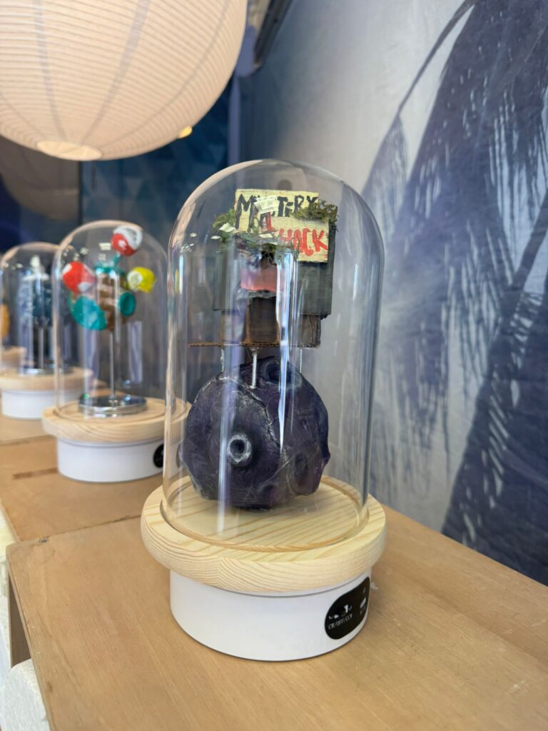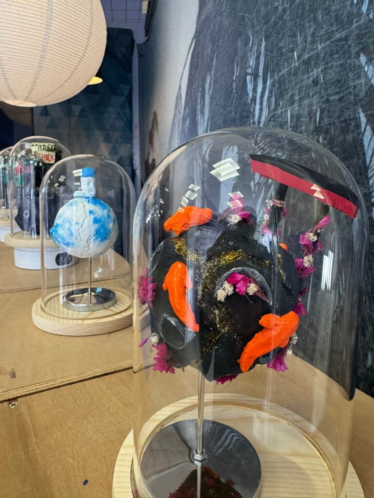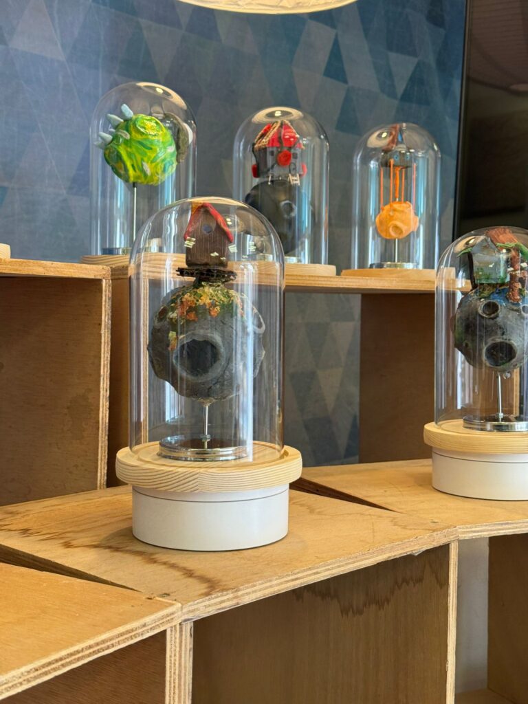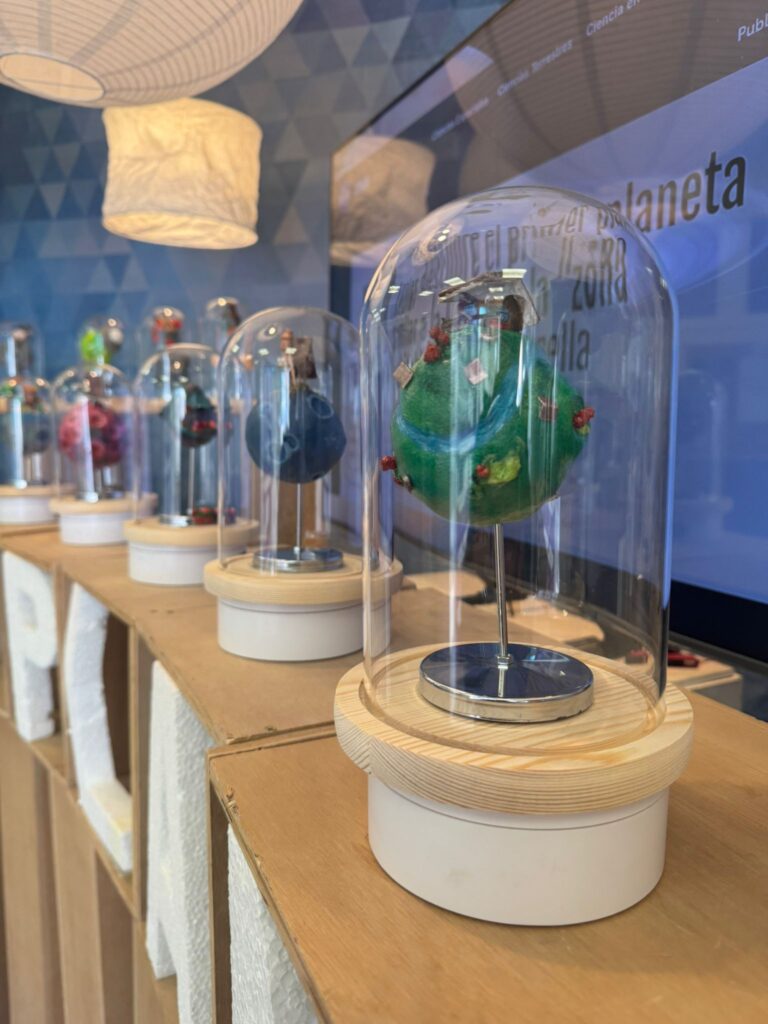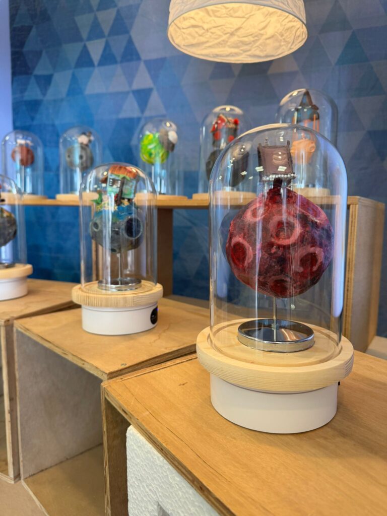 “Big Little Planet” és una proposta artística que presenta urnes amb mons en miniatura que contenen petites cases al seu interior. Aquest contrast visual posa de manifest la fragilitat del nostre planeta i ens convida a replantejar la nostra manera de viure, des d’una escala més conscient i propera.