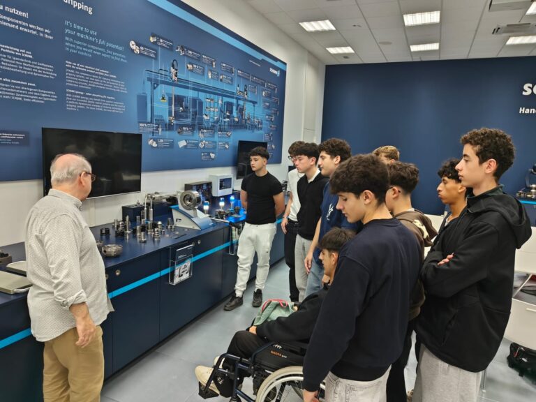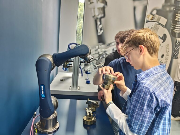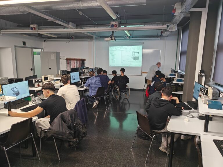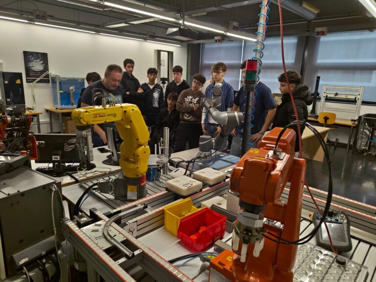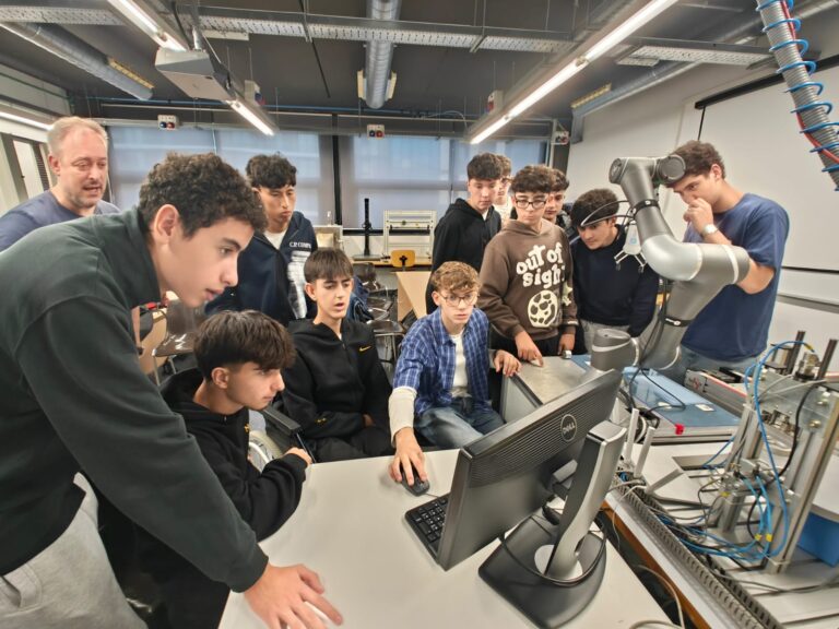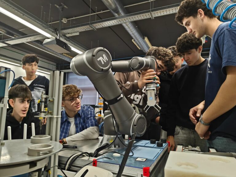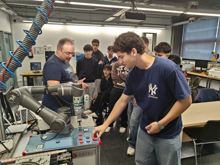 Divendres passat, l’alumnat de Robòtica de 1r de Batxillerat va visitar el centre universitari TecnoCampus de Mataró. Durant la sortida, van participar en diversos tallers d’automatització, mecanitzat i programació, on van poder realitzar simulacions i programar i manipular braços robòtics professionals. L’experiència va resultar molt enriquidora, i l’alumnat en va destacar la qualitat de les explicacions i el tracte del professorat del TecnoCampus.