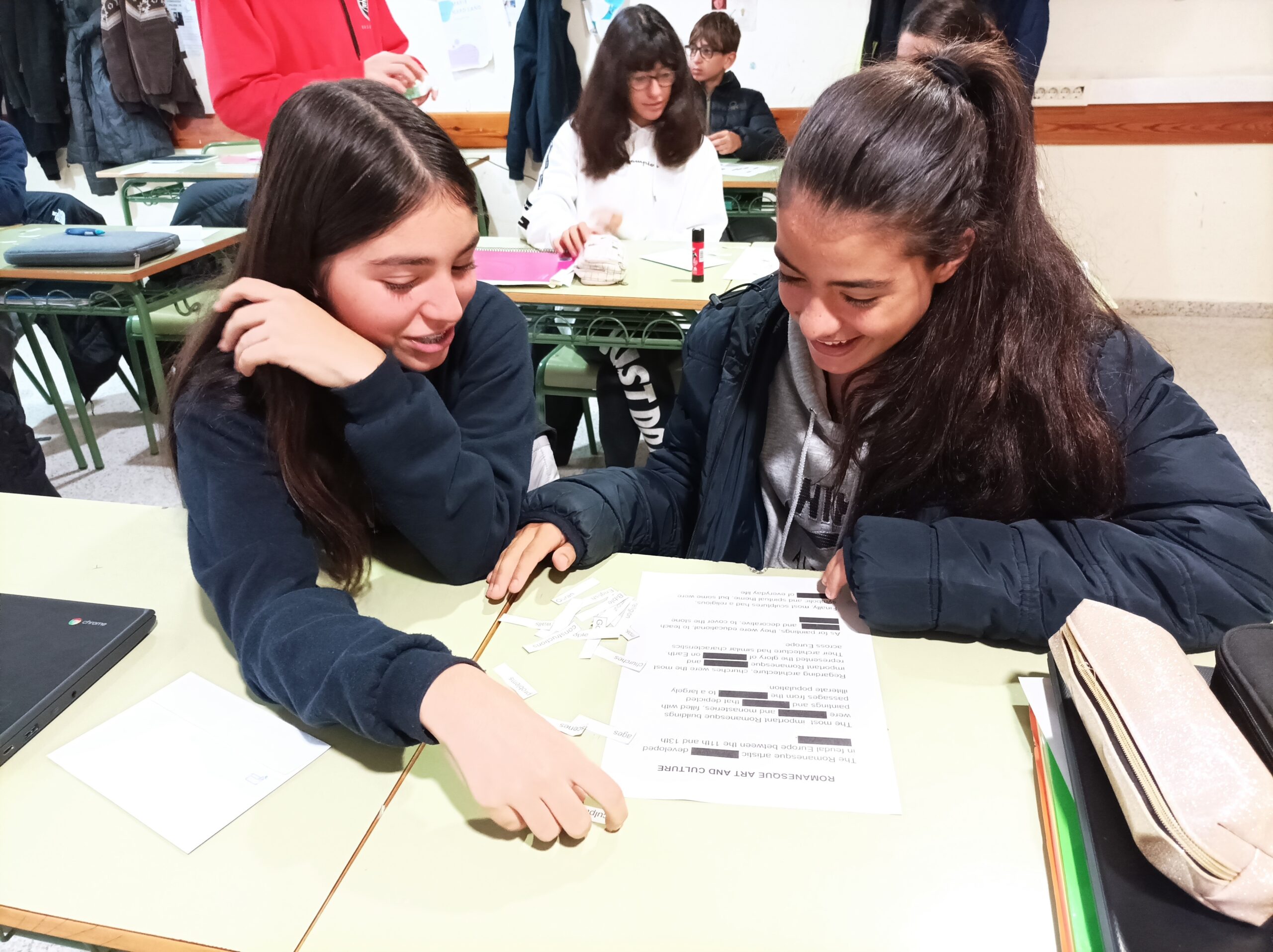 Per treballar els diferents tipus de societats (romans, germànics, bizantins i francs) vam dividir la classe en 4 grups, cada grup es preparava una pregunta sobre una de les societats. Seguidament una persona de cada grup anava a un altre grup a demanar informació que havia de comprendre per després traslladar la resposta al seu grup.