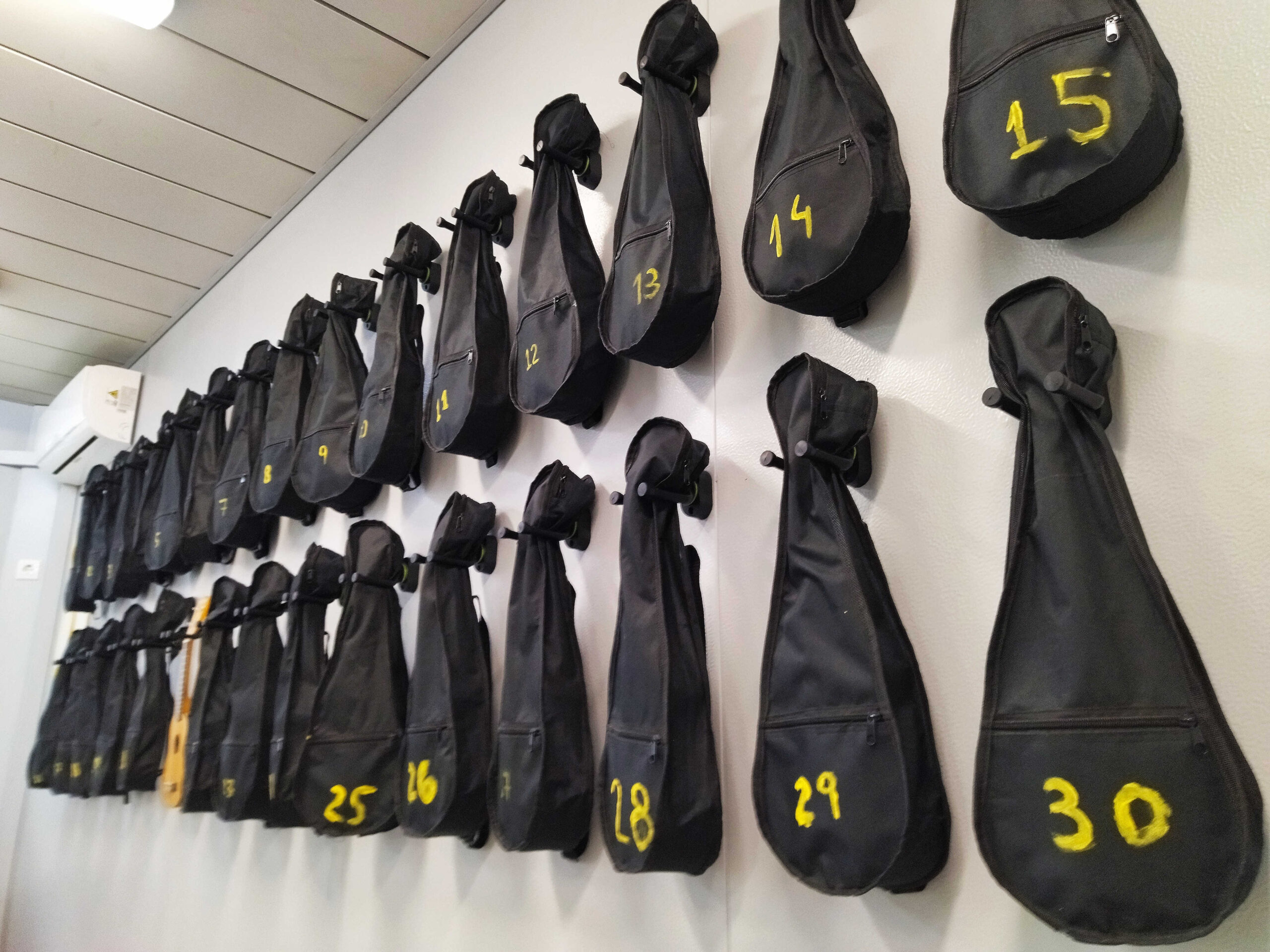 30 ukuleles preciosos que quan entres a la sala de música imposen amb la seva presència. 60 mans que a cada classe es mouen per coordinar-se i aconseguir un millor so. 60 orelles que se sorprenen d’estar escoltant una cançó tocada per nosaltres mateixos… en viu i en directe. Un mega pati que s’omple de so, sorolls, silencis… i ens permeten gaudir de l’aire, del sol i anar al nostre ritme fent un treball autònom i cooperatiu.