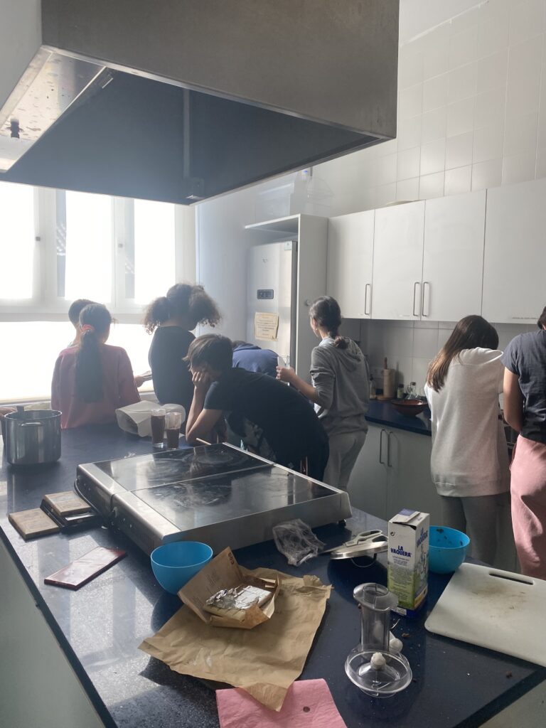 Aquests dies els grups de Pensament i Recerca de 2n d’ESO hem estat fent pastissos a l’institut i a la cuina de l’Ateneu l’Harmonia.  Estem treballant el xoc químic i la matèria vinculant , la xocolata. Com a cloenda del projecte havíem de crear una recepta on poguéssim identificar un seguit de preceptes químics, com substàncies pures i mescles, canvis d’estat i mescles homogènies i heterogènies. Ens ho hem passat molt bé!