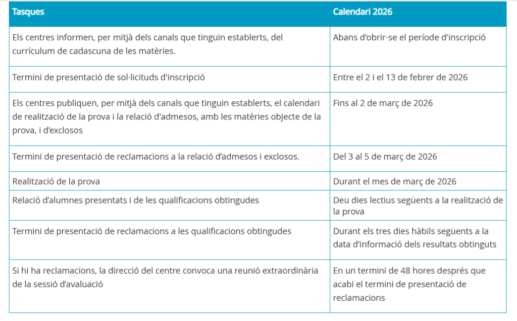 En aplicació d’aquests requisits, queda exclòs de la prova l’alumnat inscrit per repetir quart d’ESO en el present curs 2025-2026.