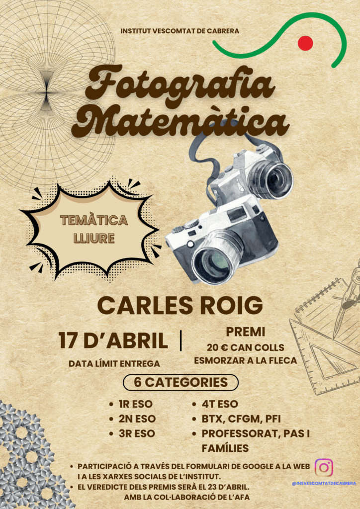 🗓️ Teniu de temps fins el 17 d’abril per presentar la fotografia matemàtica i és de temàtica lliure.