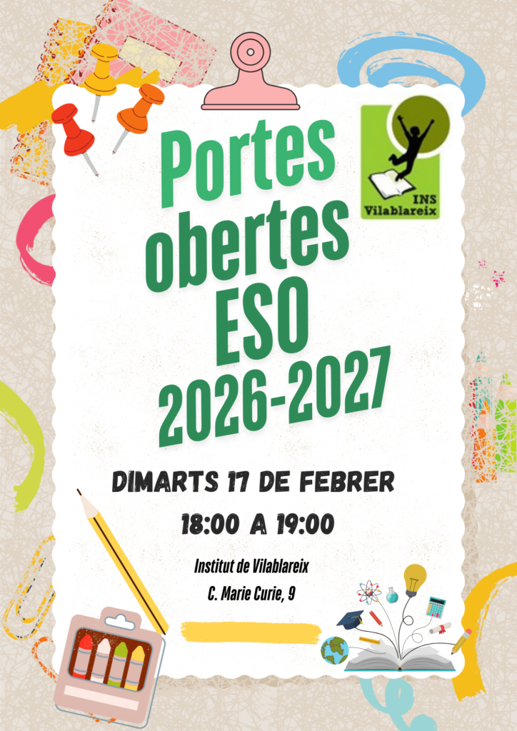 El pròxim 17 de febrer a les 18.00 h el centre obre les portes a les famílies de l’alumnat nou d’ESO.