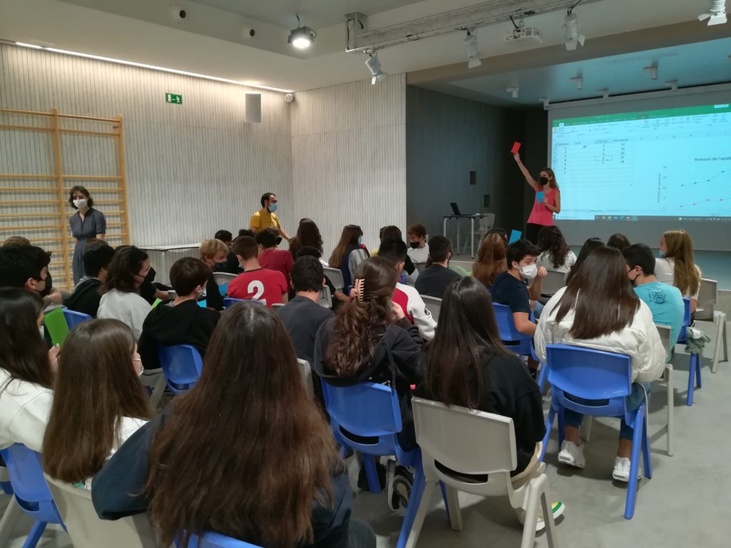 La doctora Clara Prats, investigadora del Computational Biology and Complex Systems, BIOCOMSC, ha fet una xerrada a l’alumnat de 4t dels itineraris científic i tecnològic i al de 1r i 2n de batxillerat científic, on ha parlat del que significa dedicar-se a la recerca com a professió, destacant el treball multidisciplinar i cooperatiu, i de la importància del tractament de les dades i les matemàtiques.
