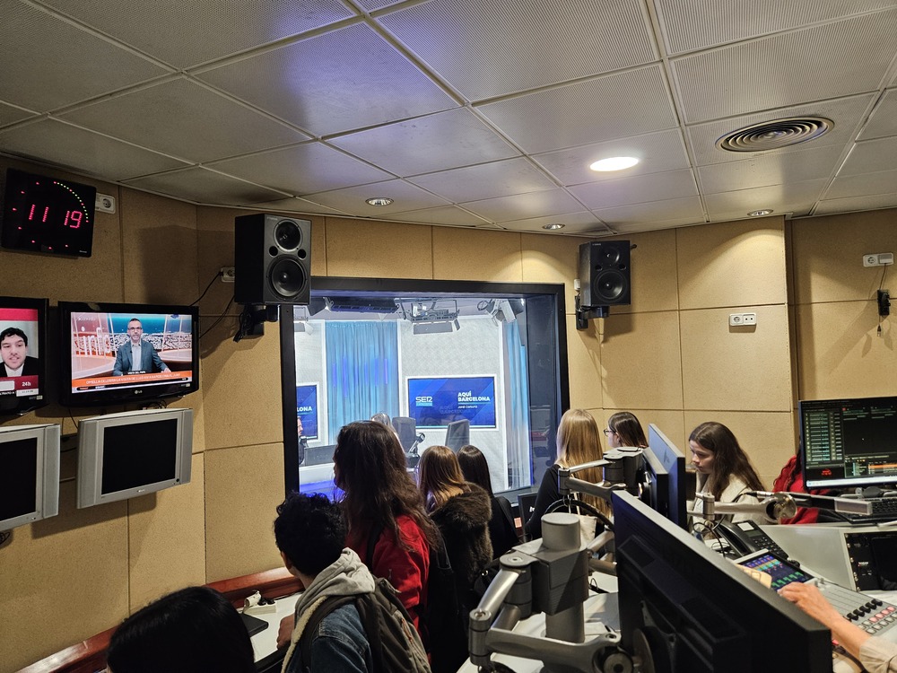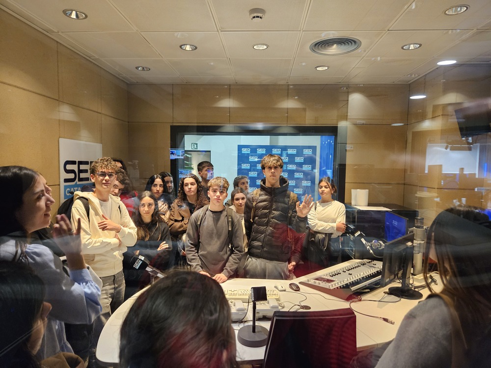 El dijous 26 de febrer, els alumnes de 4t d’ESO del projecte de Ràdio Vilafant van visitar els estudis de la Cadena SER a Barcelona. La Gemma Alegrí (presentadora de Hora 14 Catalunya cap de setmana) i en Carles Franquet (responsable de comunicació) ens van acompanyar per les instal·lacions del carrer Casp i ens van explicar la història de l’emissora i l’edifici. Vam passar per la redacció, vam veure l’estudi Toresky, vam fer un taller de gravació de publicitat radiofònica i vam assistir una estona al programa esportiu Què t’hi jugues!.