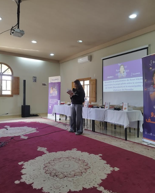 El passat 5 de febrer, dues alumnes de 4t d’ESO van viatjar al Marroc per presentar el llibre Hikaya II: cercle de relats contra les violències masclistes. El projecte s’ha desenvolupat des del Servei de Solidaritat i Cooperació de l’Ajuntament de Vilafranca del Penedès, juntament amb l’Institut Marroquí per al Desenvolupament Local (IMADEL) i la Diputació de Barcelona.