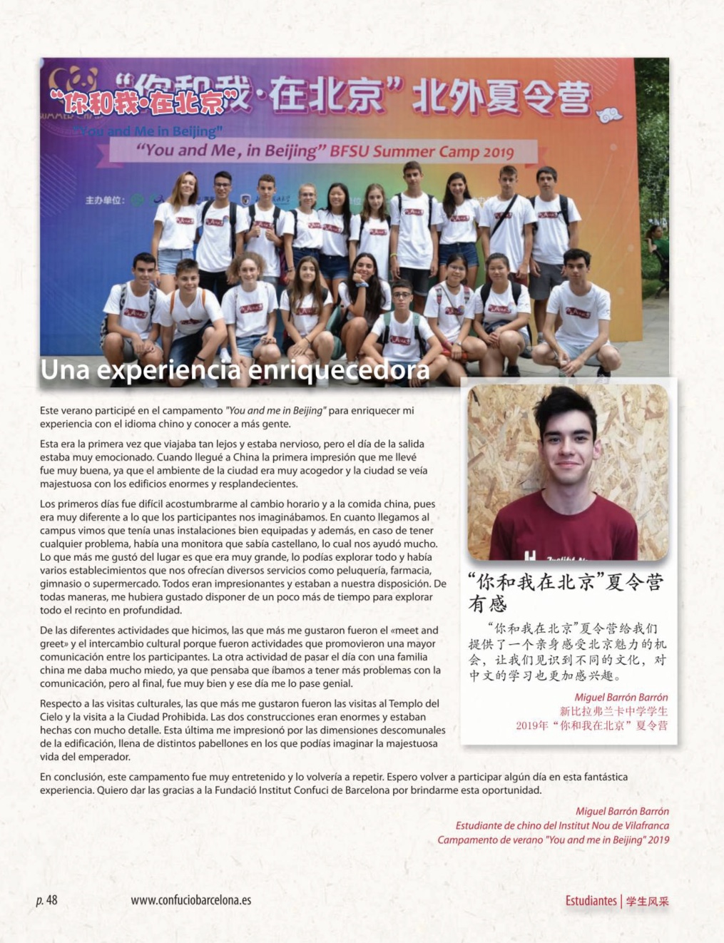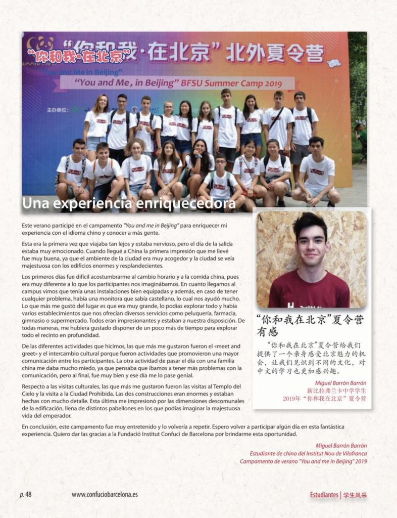 Ja ha sortit el número anual de la revista que cada curs edita la FICB (Fundació Institut Confuci de Barcelona) on el nostre institut hi està representat per l’experiència d’en Miquel Barrón al campus d’estiu a la Xina “你和我在北京” (Tu i jo a Beijing) i un seguit de nadales que van fer els alumnes que cursen l’optativa de llengua xinesa de 1r d’ESO.