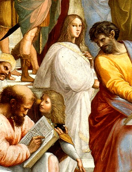 Hipàtia segons Rafael, detall de l’Acadèmia d’Atenes (1509-11)Font de les frases: https://trianarts.com/hipatia-de-alejandria-sus-frases/
