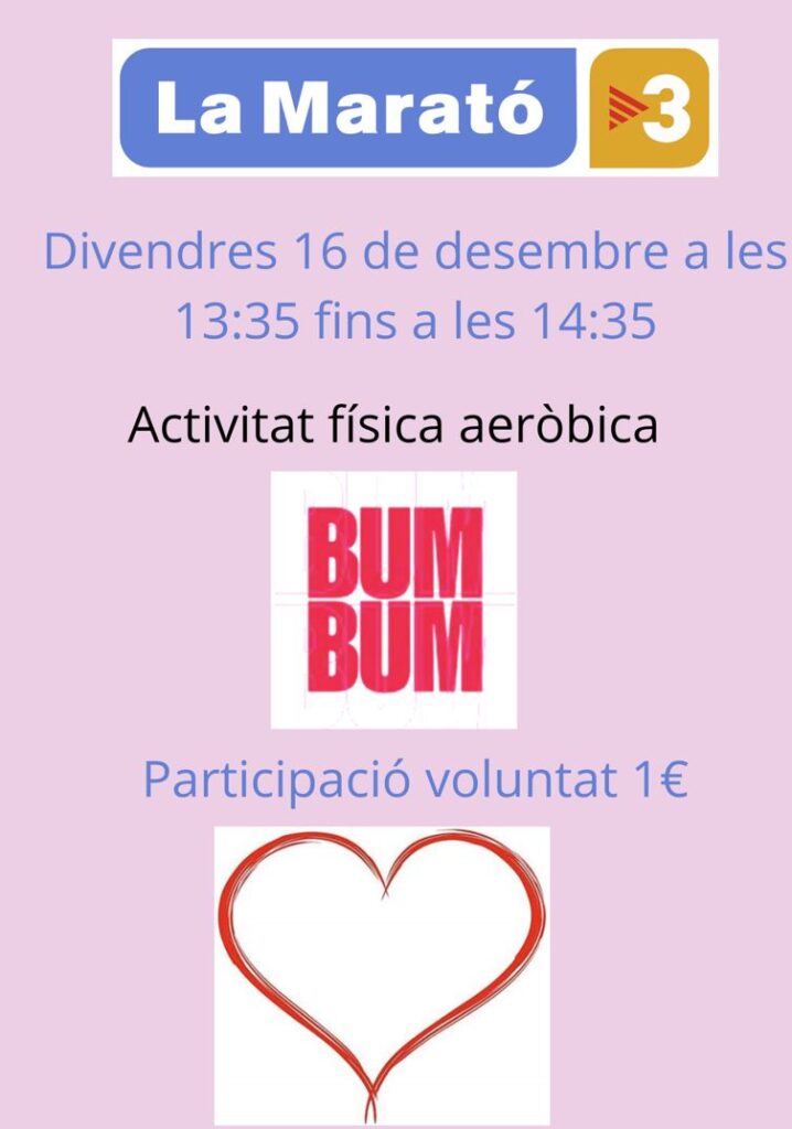 El passat divendres dia 17 de desembre vam gaudir d’una activitat solidària i cardiosaludable en col·laboració amb la Marató de TV3, una activitat que ha permès recaptar 156 euros!