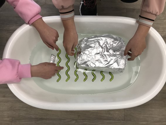 Té a veure amb la densitat o la massa per volum del vaixell (i la seva càrrega) en comparació amb la densitat de l’aigua. En aquesta activitat científica, els alumnes de l’institut Vilafranca 2 han fabricat  petits “vaixells” amb paper d’alumini per explorar com la seva mida afecta el pes que transporten i com es relaciona amb la densitat de l’aigua.