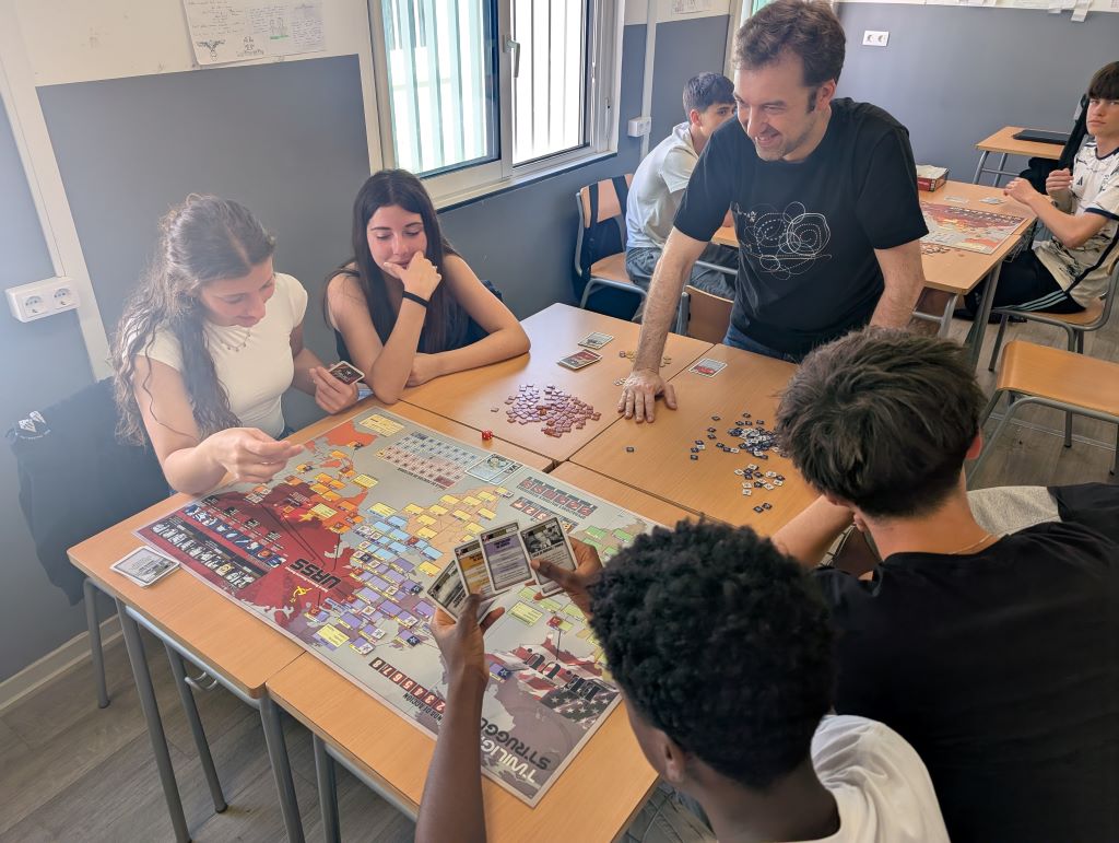 Dijous passat, l’alumnat de 4t va participar en el taller del joc de taula Twilight Struggle. Un joc que tracta sobre la Guerra Freda. La sessió va comptar amb una primera part de xerrades relacionades amb la ciència i la Guerra Freda i la traducció i els jocs de taula. La segona part de la sessió va consistir a explicar les regles del joc i començar a jugar. Les partides consistien a posicionar-se amb el bloc americà o soviètic i intentar dominar el món a través d’influències.