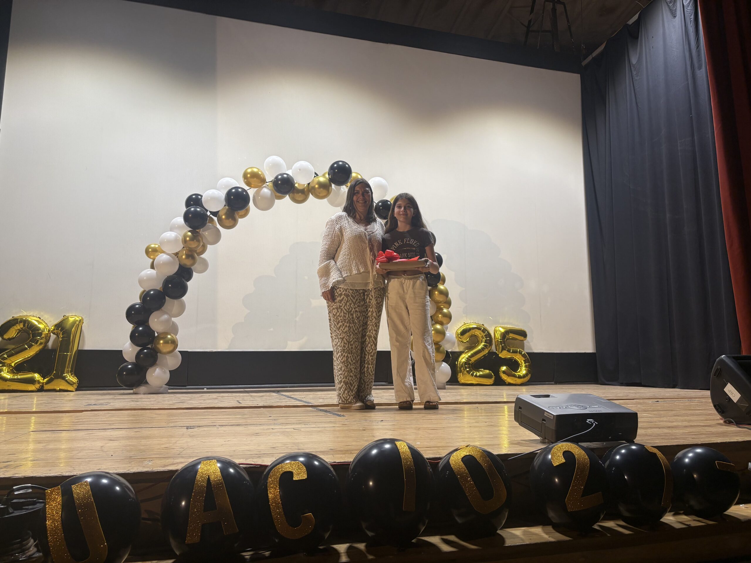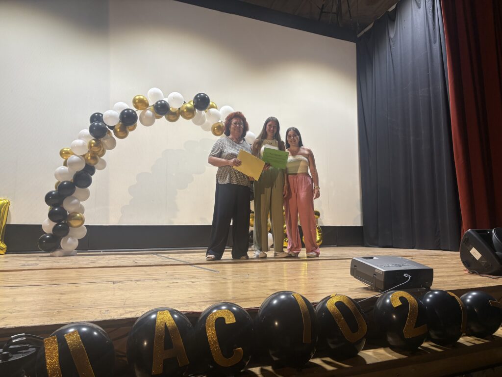 L’acte va comptar amb la participació dels alumnes de tots els cursos. Els de 1r van oferir una actuació musical molt especial: van interpretar Coti x Coti de The Tyets amb l’ukelele, i van dedicar una cançó als companys i companyes de 4t. Els alumnes de 2n es van encarregar de transformar l’espai amb una decoració festiva i elegant, i els de 3r van posar el toc d’humor i energia amb un ball sexi i atrevit que va arrencar somriures a tot el públic.