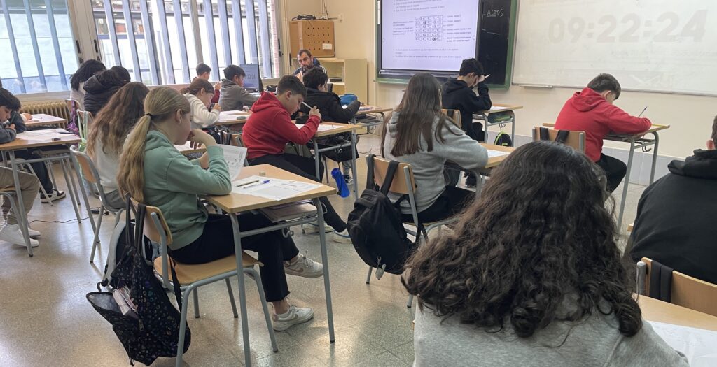 Aquest matí, els alumnes de 1r a 4t d’ESO han participat a les Proves Cangur, una activitat matemàtica que es realitza a nivell internacional i que busca fomentar l’interès pels reptes de lògica i raonament entre l’alumnat.