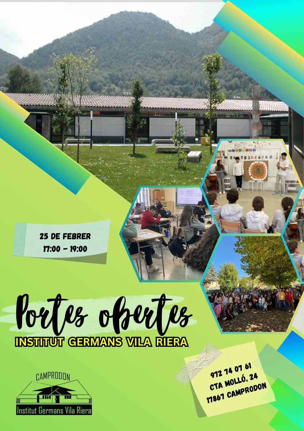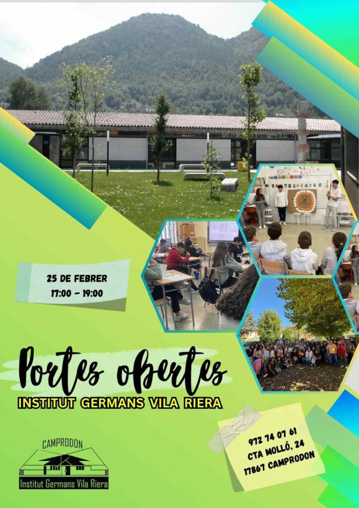 El proper dimecres 25 de febrer, a les 17.00 h, el nostre institut obrirà les portes a totes les famílies i als futurs alumnes que vulguin descobrir el centre i el seu projecte educatiu.