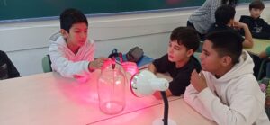 El passat 11 de novembre, l’alumnat de 1r d’ESO va poder celebrar el dia de la ciència a través d’un taller sobre el canvi climàtic desenvolupat per l’AMB. Vam aprofitar el fet d’estar treballant el tema de l’atmosfera a biologia per posar en pràctica tots els sabers sobre la mateixa i comprovar si realment els gasos d’efecte hivernacle, com el CO2, influeixen a l’escalfament global del planeta Terra utilitzant el mètode científic i una sèrie de senzills experiments. Per saber la resposta de tot plegat pregunteu els vostre fills/es!