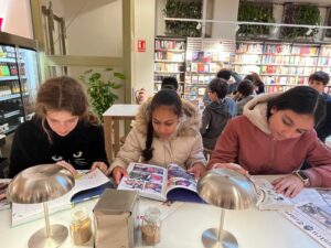 Durant la visita, cada alumne ha tingut l’oportunitat d’escollir un llibre de la temàtica que més li agrada, combinant interessos personals amb la voluntat d’oferir lectures variades i atractives per a tota la comunitat educativa. L’alumnat ha pogut consultar tant novetats editorials com grans clàssics de la literatura, i s’ha deixat assessorar per l’Alberto, llibreter de la secció juvenil, i per l’Alessandro Ulivieri, director de les llibreries La Central, que han orientat les eleccions amb criteri i entusiasme.