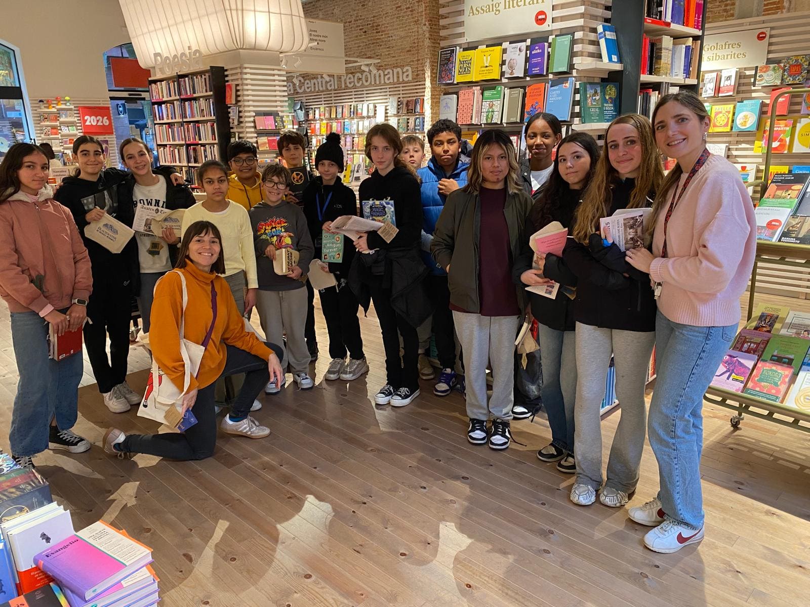 Durant la visita, cada alumne ha tingut l’oportunitat d’escollir un llibre de la temàtica que més li agrada, combinant interessos personals amb la voluntat d’oferir lectures variades i atractives per a tota la comunitat educativa. L’alumnat ha pogut consultar tant novetats editorials com grans clàssics de la literatura, i s’ha deixat assessorar per l’Alberto, llibreter de la secció juvenil, i per l’Alessandro Ulivieri, director de les llibreries La Central, que han orientat les eleccions amb criteri i entusiasme.