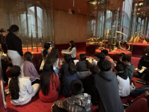 Durant la visita, l’alumnat va poder conèixer de primera mà les diferents famílies instrumentals -cordòfons, aeròfons, electròfons i percussió- i entendre com es classifiquen. A través de les explicacions de les educadores del museu i de l’observació directa dels instruments, l’alumnat va aprofundir en aspectes com el material de construcció, el mecanisme de producció de so i el paper de cada instrument dins l’orquestra.