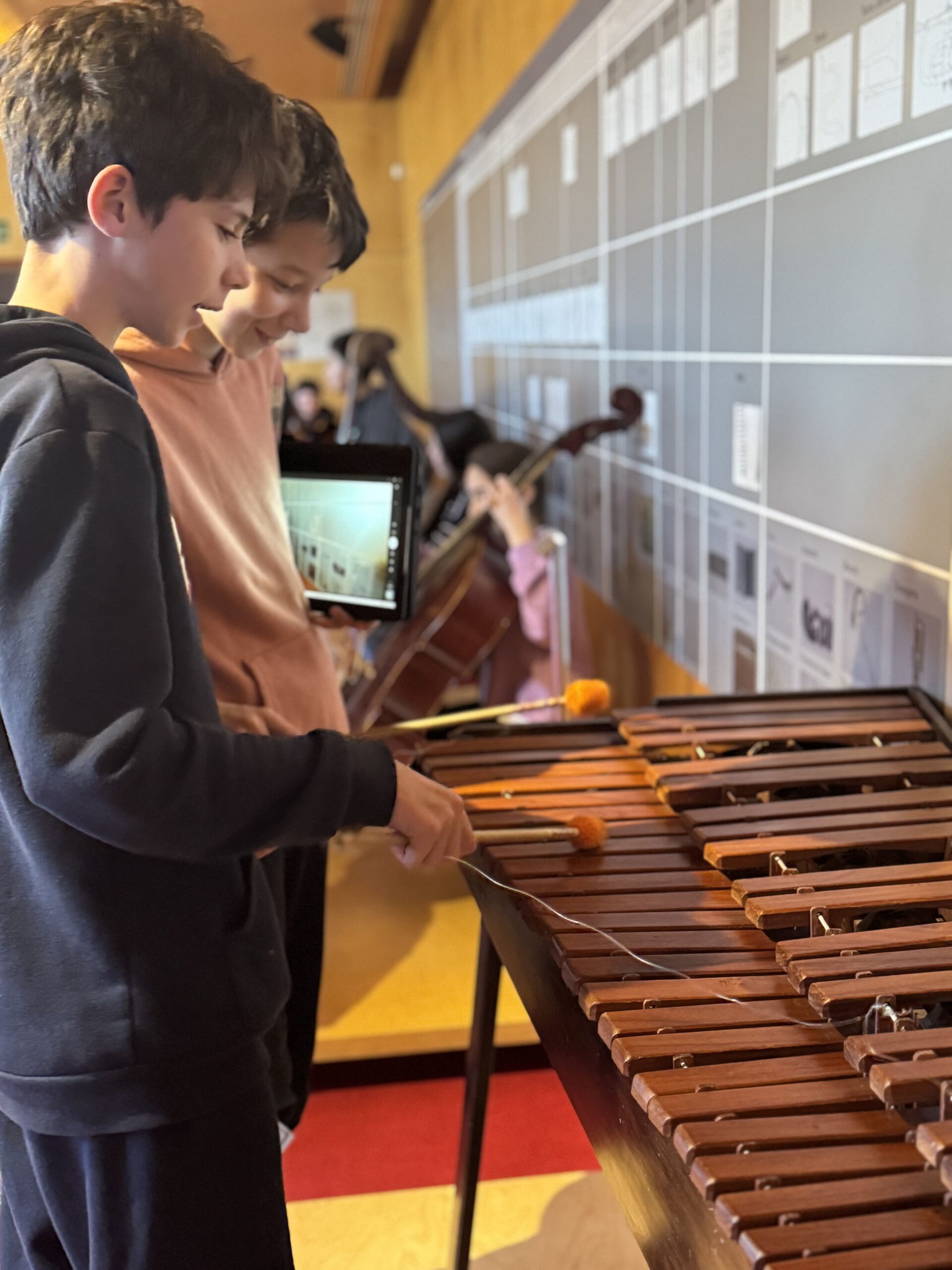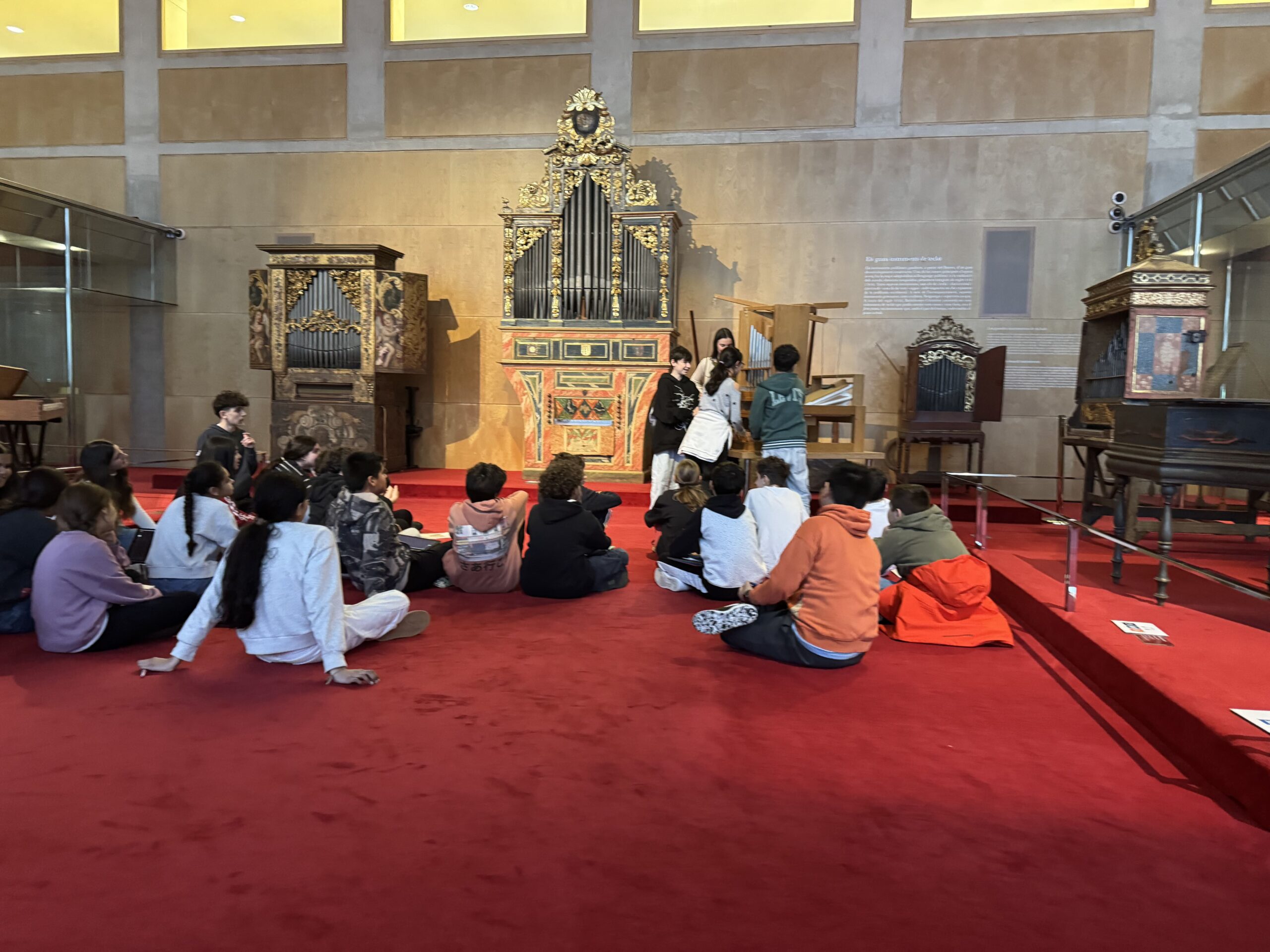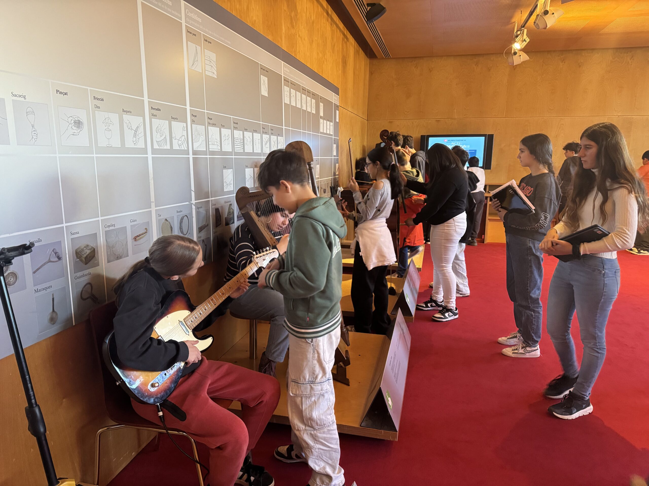 Durant la visita, l’alumnat va poder conèixer de primera mà les diferents famílies instrumentals -cordòfons, aeròfons, electròfons i percussió- i entendre com es classifiquen. A través de les explicacions de les educadores del museu i de l’observació directa dels instruments, l’alumnat va aprofundir en aspectes com el material de construcció, el mecanisme de producció de so i el paper de cada instrument dins l’orquestra.
