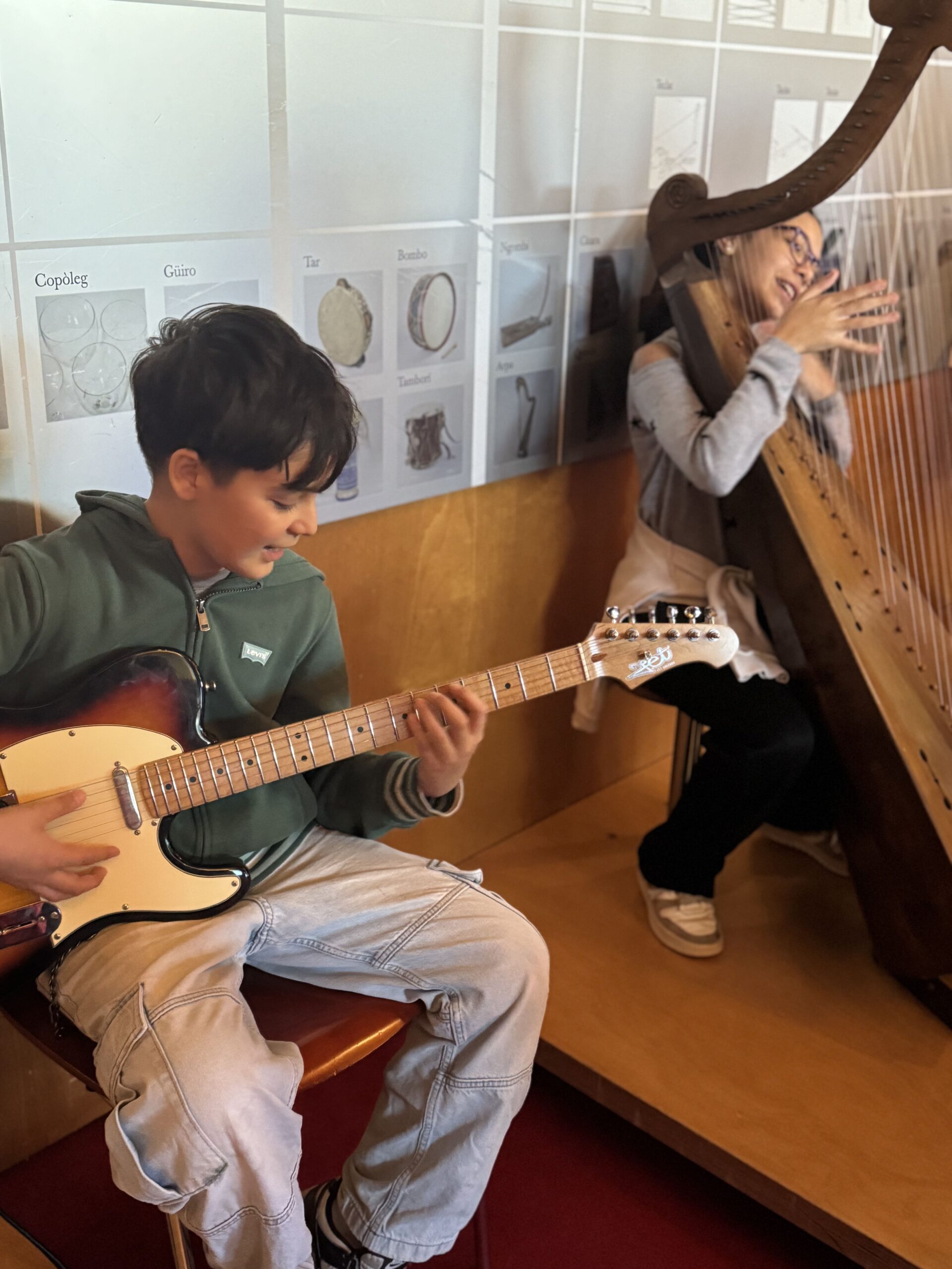 Un dels moments més enriquidors de l’activitat va ser la part pràctica de la visita: l’alumnat no només va observar els instruments, sinó que també va poder experimentar amb alguns d’ells i interpretar petites peces o fragments musicals. Aquesta vivència directa els va permetre comprendre millor les possibilitats sonores de cada família instrumental i viure la música d’una manera activa i participativa.