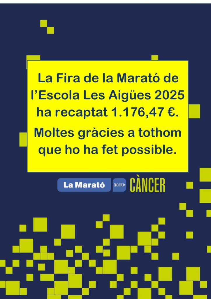 La recaptació total va ser de 1.176’47 € que ja hem ingressat íntegrament al marcador. Moltes gràcies a tothom que ho ha fet possible.