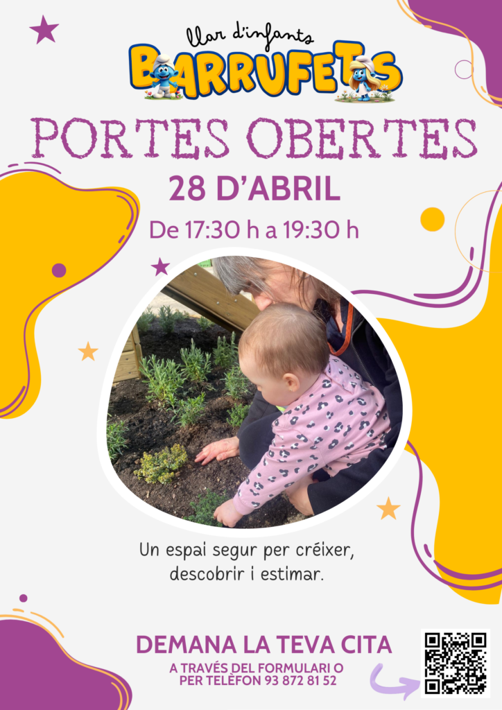 La Llar d’Infants Barrufets us convida a conèixer el nostre centre en la Jornada de Portes Obertes, que tindrà lloc el proper 28 d’abril a la tarda.
