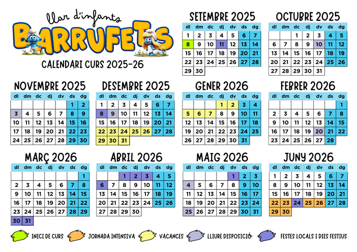 - Horari intensiu (només matins): del 22 al 30 de juny 2026