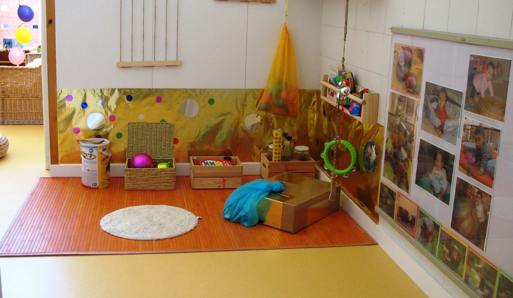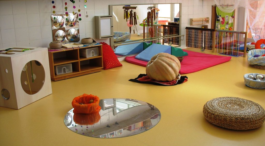 Aquestes aules consten: d’espai de joc, de dormitori i canviador. Des d’elles es pot accedir directament al patí, fent-lo així un espai tranquil i enriquidor on poder desenvolupar-se i créixer.
