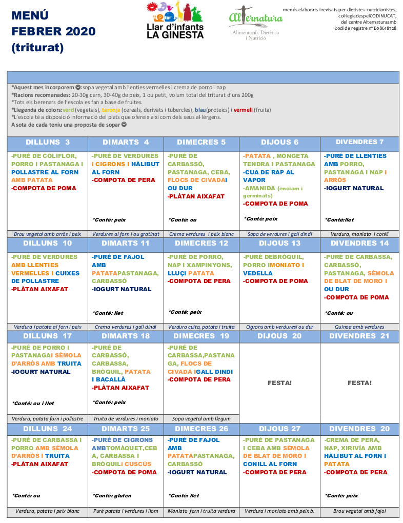 Podreu trobar l’enllaç de les “Recomanacions per a l’alimentació en la primera infància (de 0 a 3 anys)” que va elaborar l’Agència de Salut Pública de Catalunya a l’apartat “Menjador