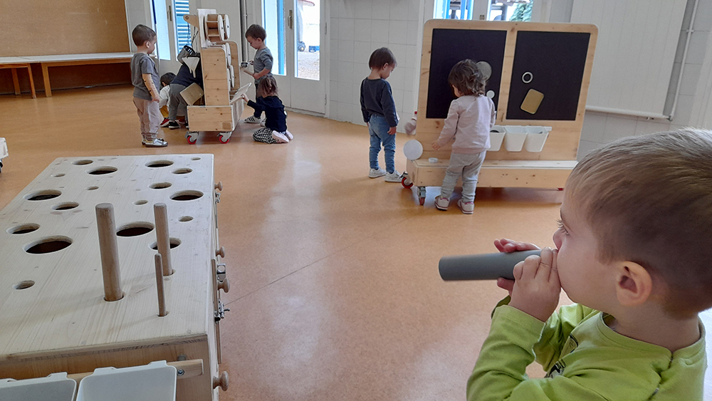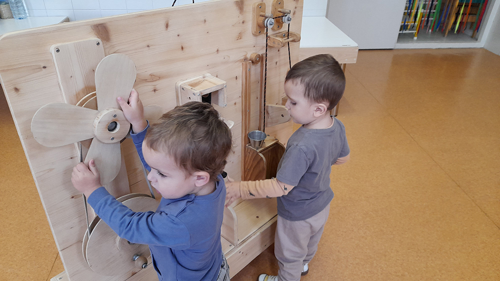 A cada grup classe se li va oferir una sessió de 45 minuts. Per al desenvolupament de l’activitat es van disposar diferents estacions —majoritàriament dissenyades amb materials orgànics— amb les quals els infants, lliurament, hi podien interactuar segons les seves preferències. Cada estació estava pensada per aplicar-hi diferents principis científics:  imants, engranatges, transvasaments, acció-reacció, politges, obrir-tancar, posar-treure, permanència de l’objecte… “Durant les sessions intervenim sense interferir”, apunta la Laura. I la directora de la Llar, Alba Barranco, afegeix: “Trobem aquesta proposta molt encertada perquè ofereix a la canalla la capacitat d’experimentar, de crear hipòtesis, de fer proves assaig-error i treure les seves pròpies conclusions…”.