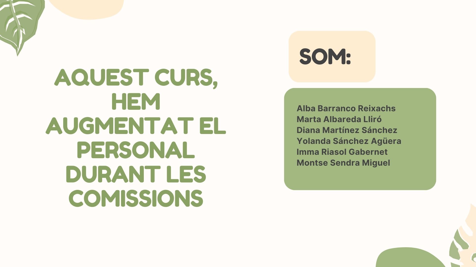 AUGMENTEM EL NOMBRE DE PERSONAL EN LES COMISSIONS D’ESCOLES VERDES