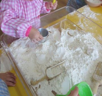 Hem “fabricat” neu amb bicarbonat per jugar amb el grup de Conills. Uns quants animals àrtics, estris per manipular la “neu”…