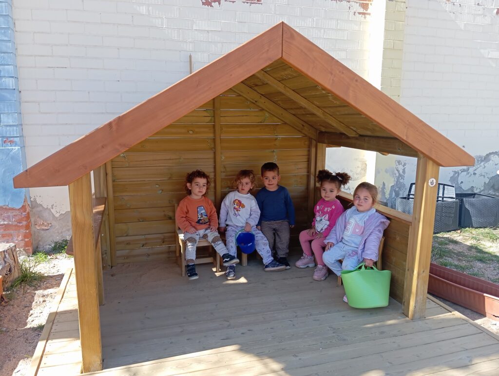 Un sorral que hem ampliat i millorat amb una estructura per desenvolupar  els aprenentatges de les qualitats físiques dels materials de l’entorn.