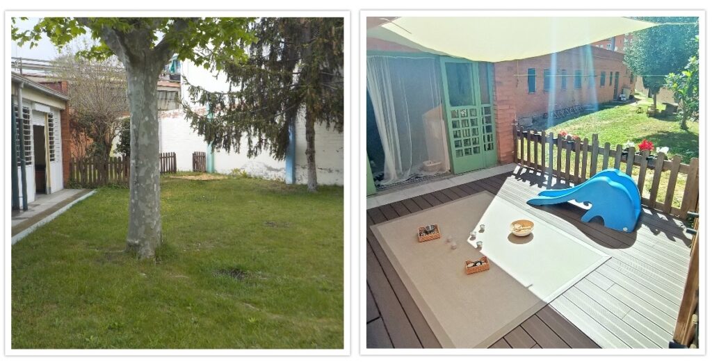 Disposem de 1500 m2 exteriors repartits en tres jardins un per cada grup d’edat, tots tres molt amplis i assolellats.